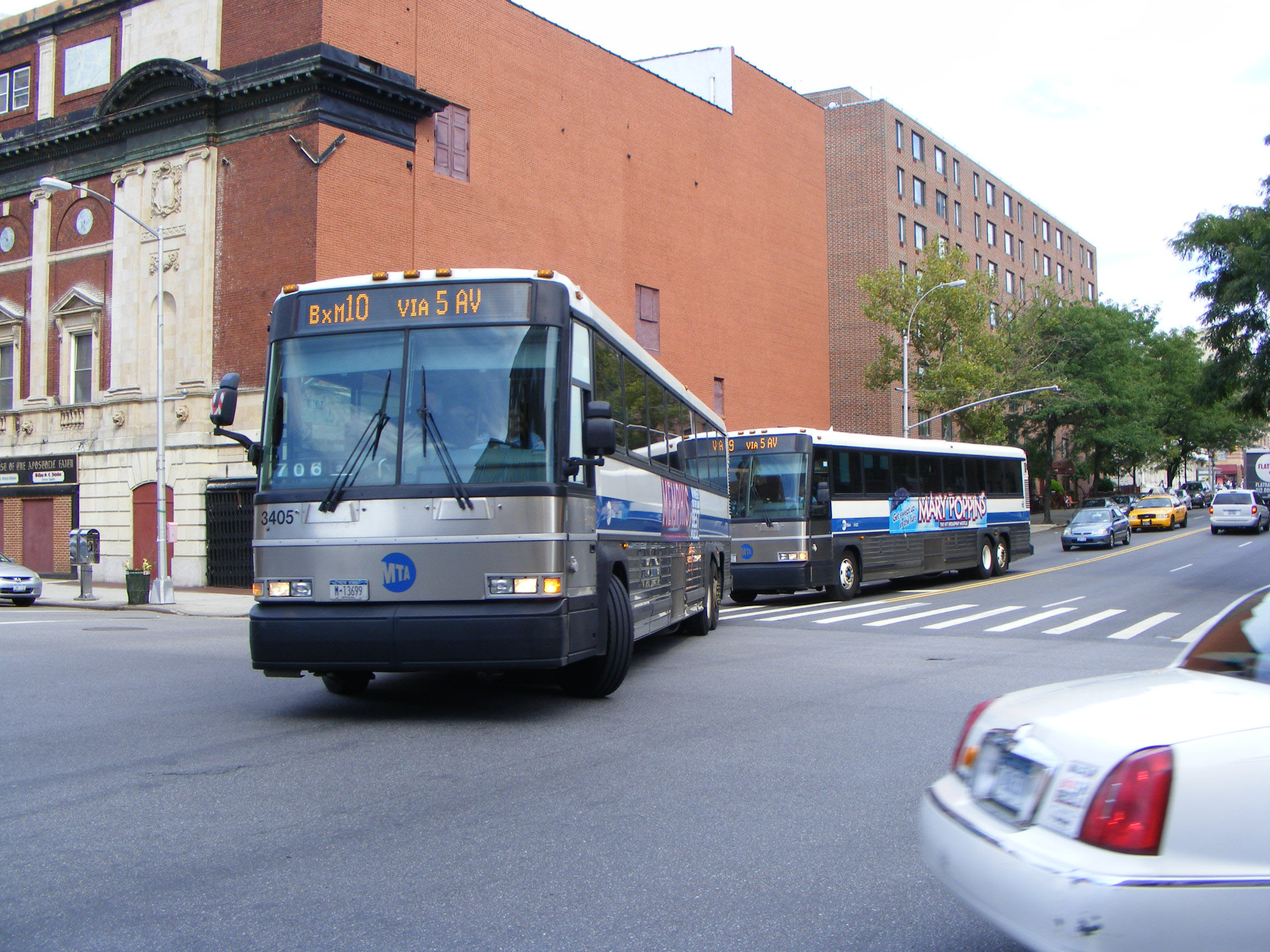 No mistaking the iconic Empire State Building in this July 2008 shot, but look at the thirty or more MTA MCI commuter coaches on layover atop the Michael J Quill Bus Depot which takes up the entire block between 11th and 12th Avenues and 40th and 41st Streets.