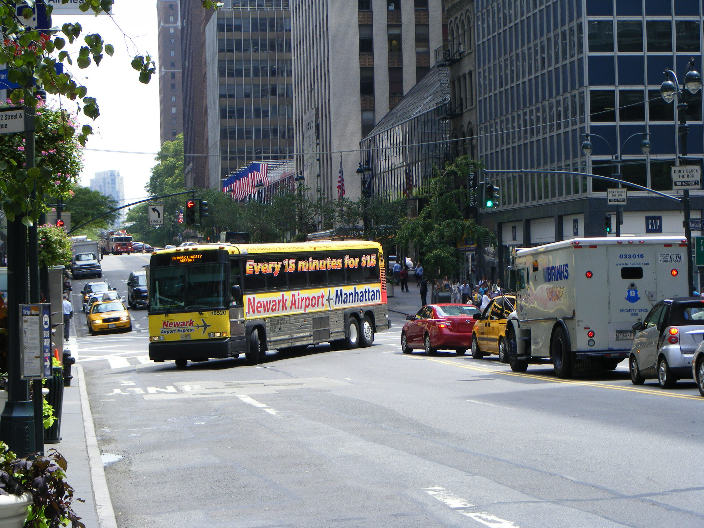 Olympia is one of Stagecoach's CoachUSA subsidiaries and it is responsible for the Newark - Manhattan Airport Express. This July 2008 view of MCI 11902 is seen heading for Newark from downtown New York.