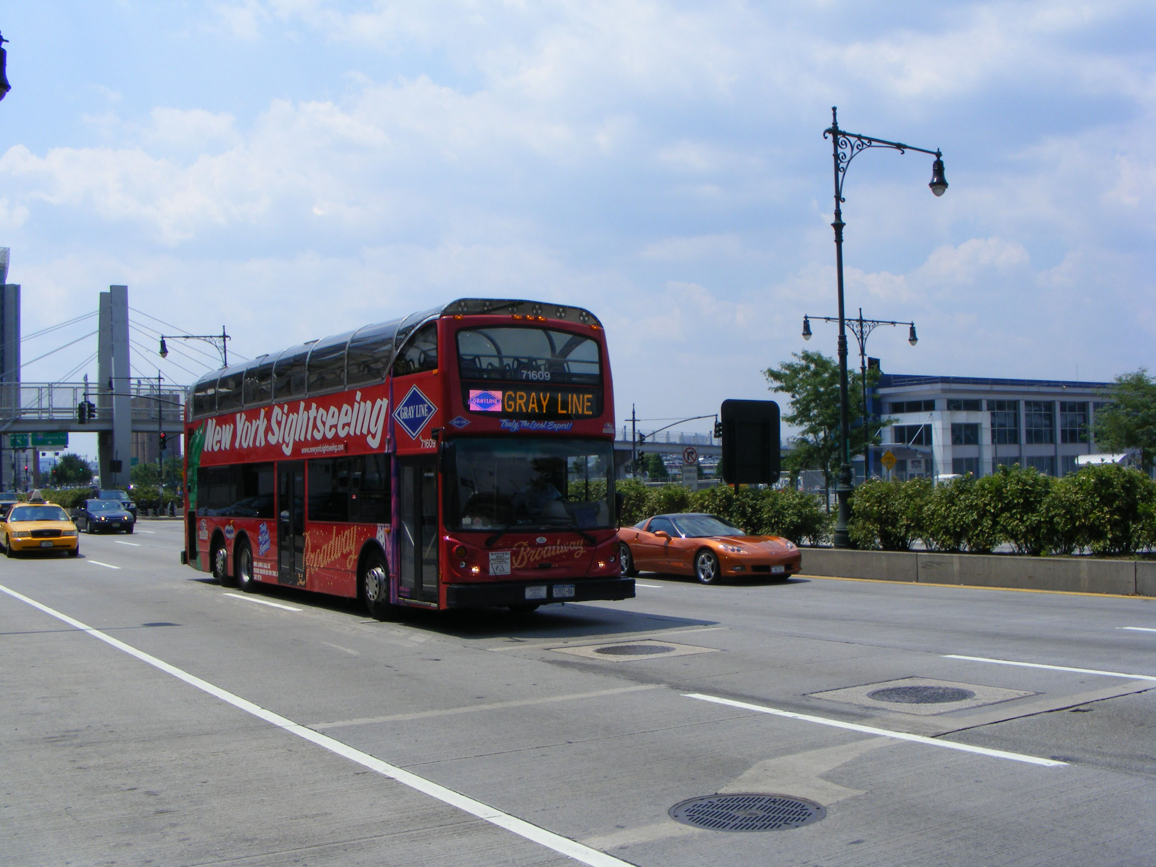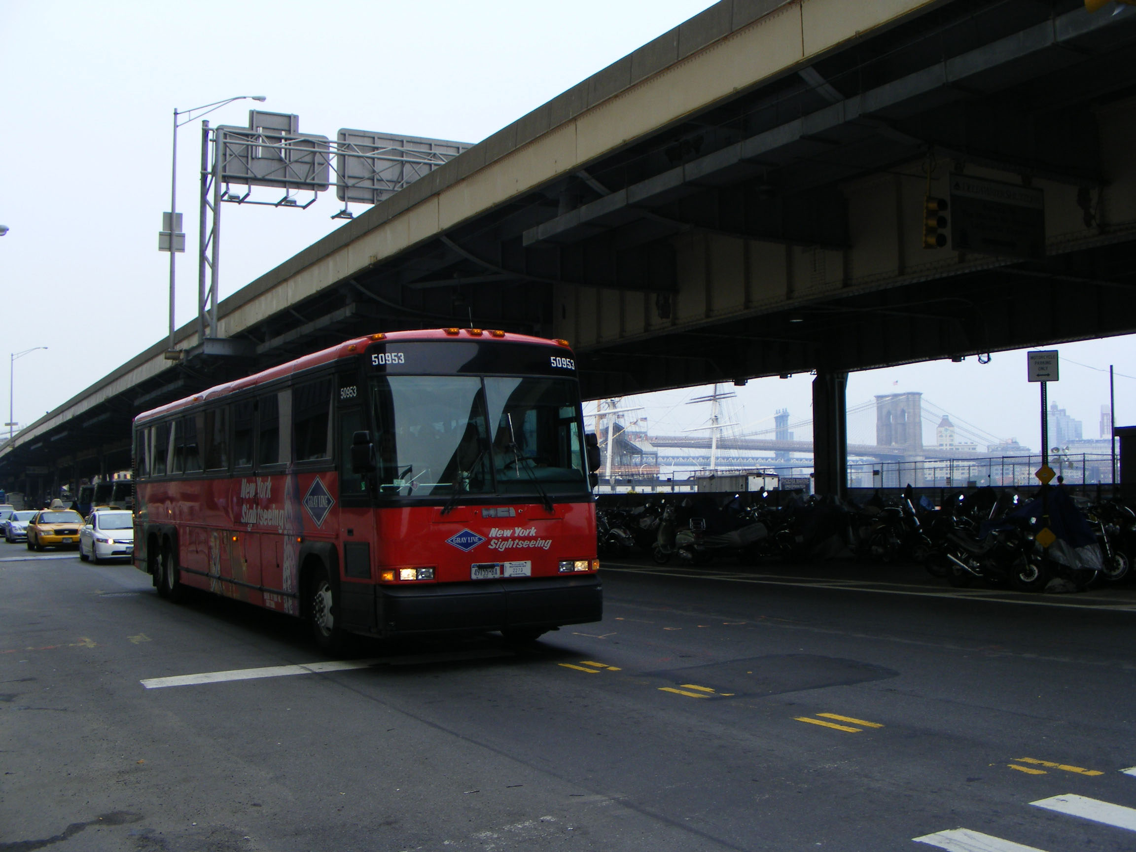 Not all of the New York Sightseeing fleet is doubledeck, MCI 50953 is seen near Washington Bridge. There are Gray Line/CoachUSA tours beyond the confines of Manhattan Island. The open top tours also double as a City Sightseeing franchise and are bookable through the City Sightseeing website. |