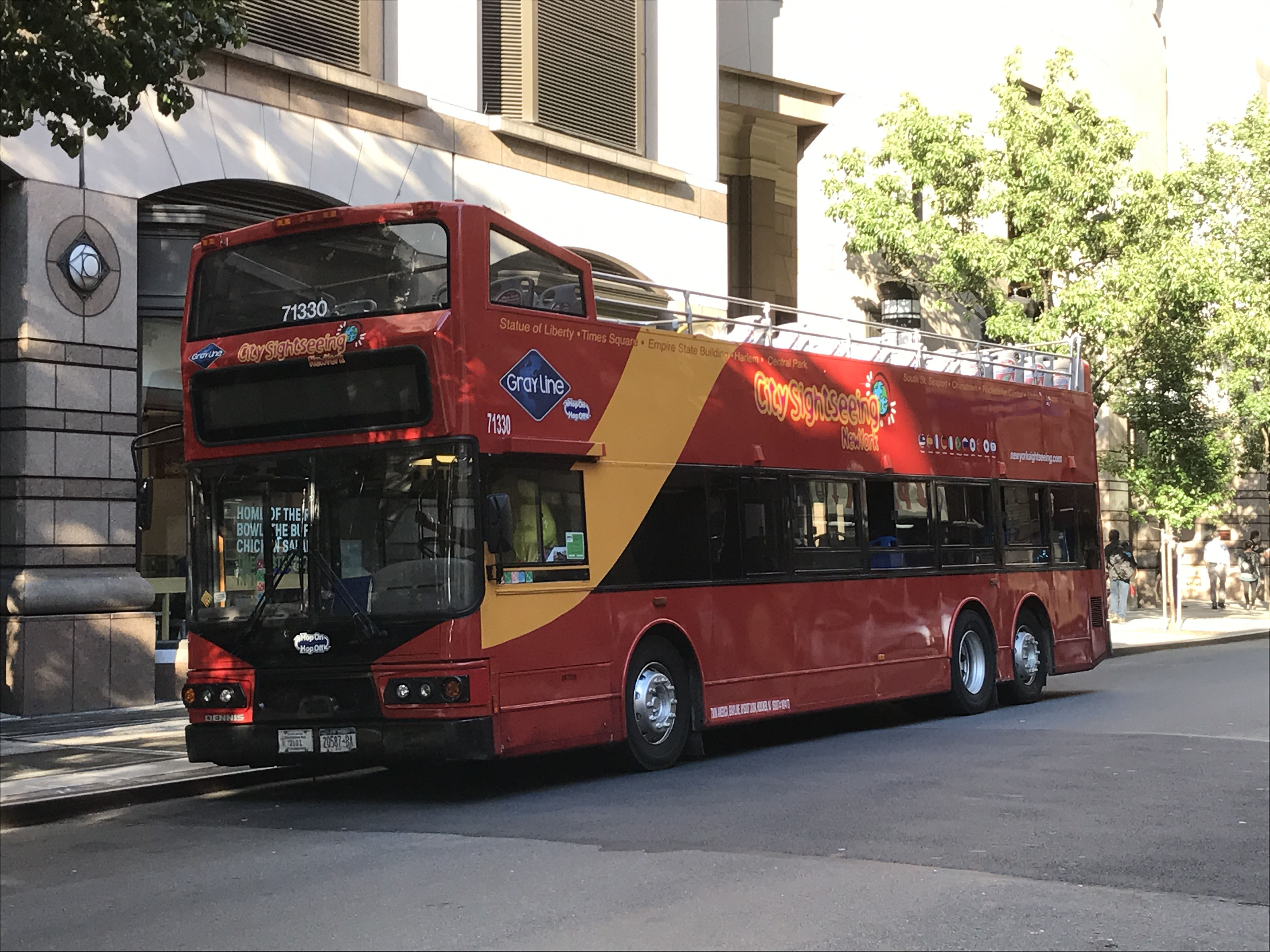 Full City Sightseeing livery was on a number of the Duple Metsec bodied open topppers, like 71330, which had an interesting black surround to its front dash. It was on layover off Time Square in July 2017.