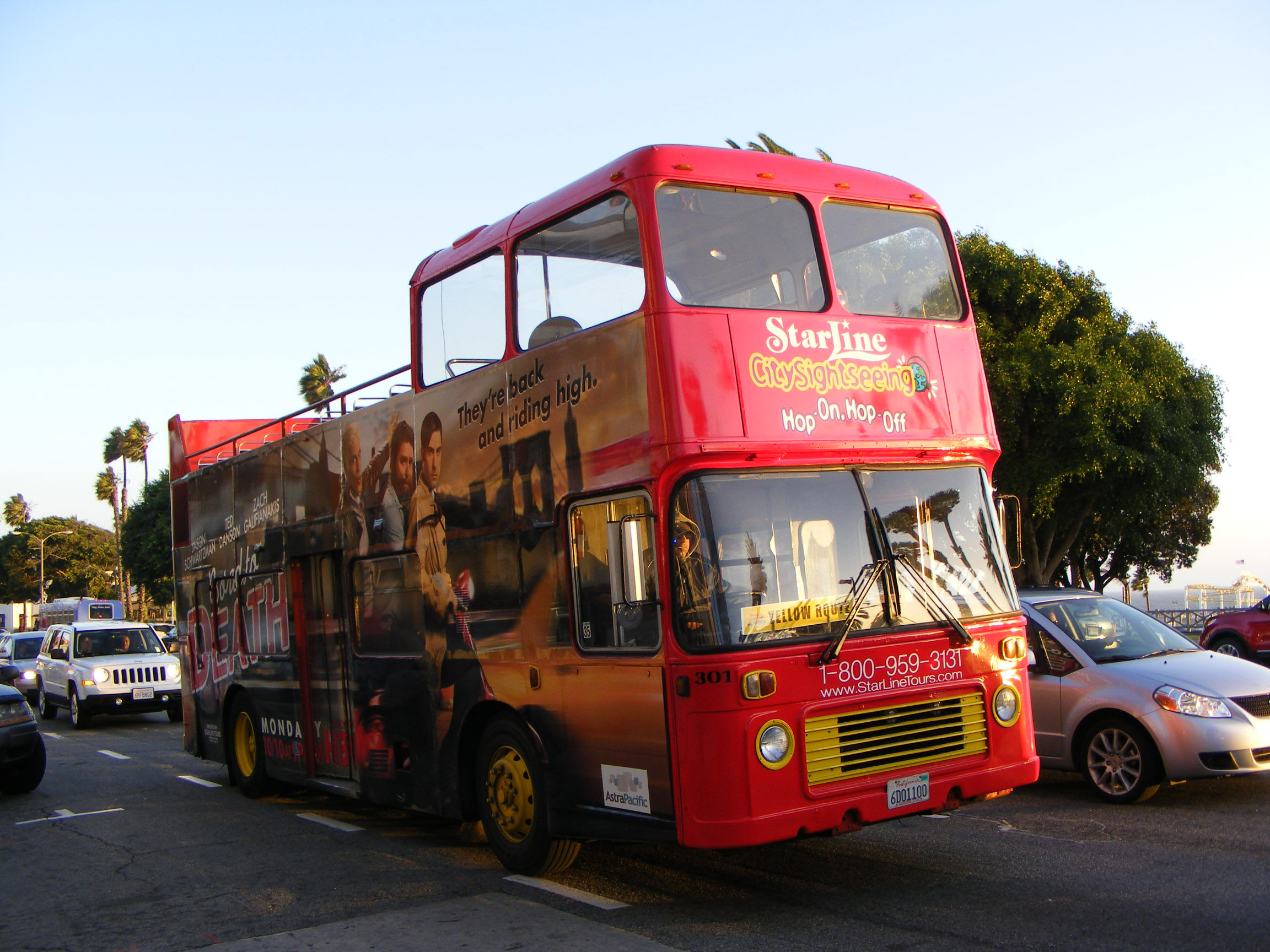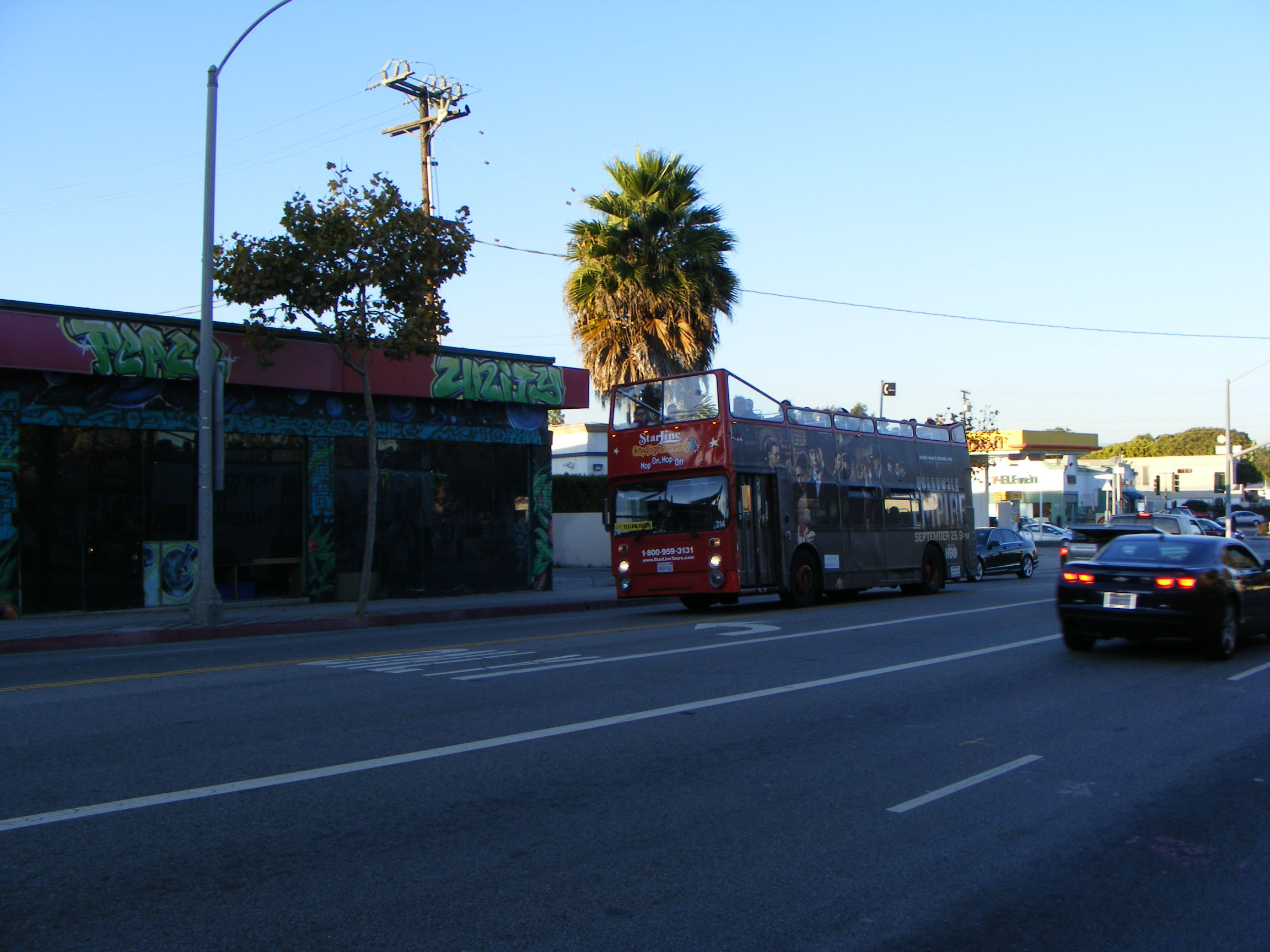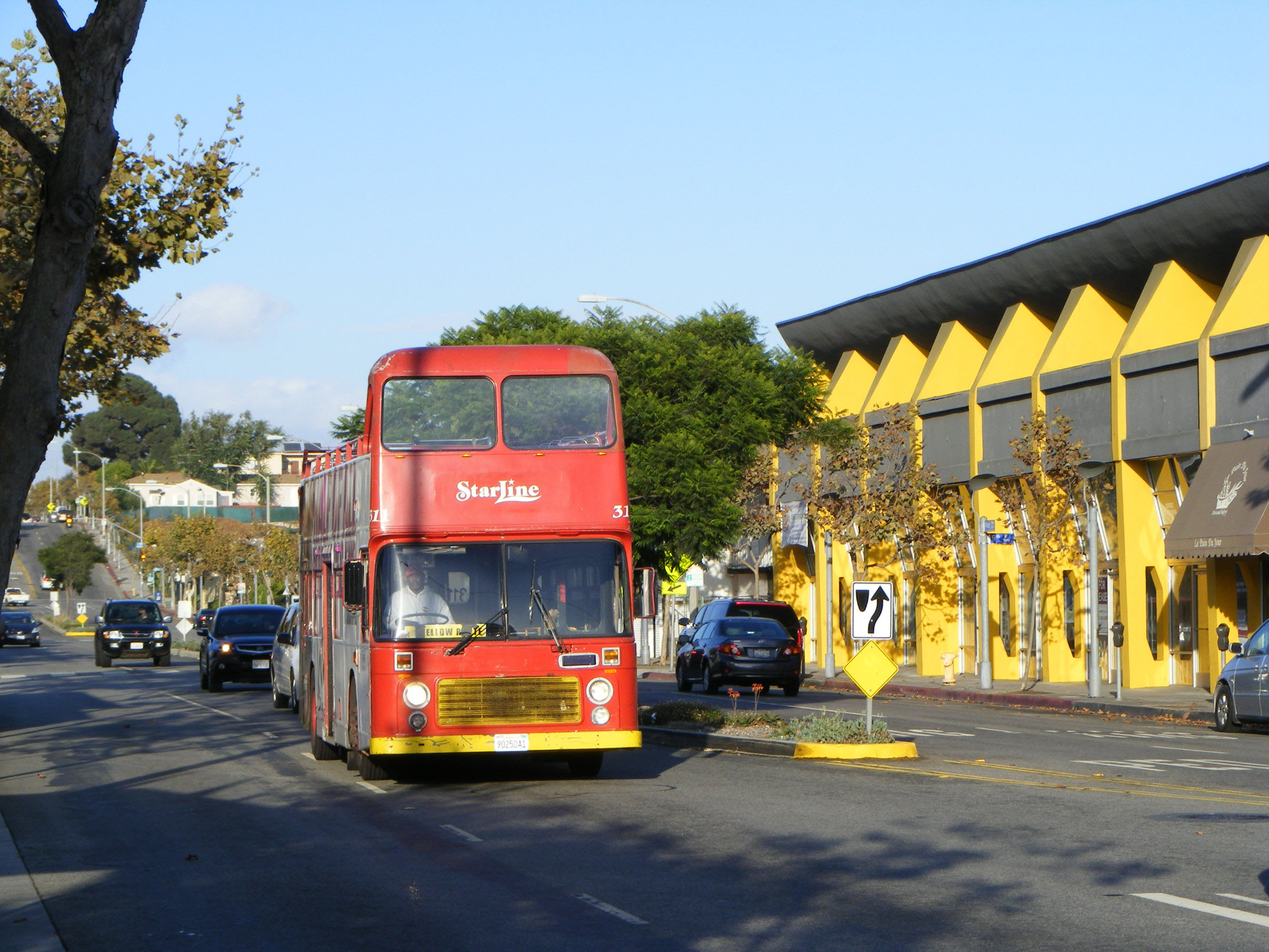 In October 2011 the StarLine City Sightseeing tour used a motley collection of former British doubledeckers like this ECW bodied Bristol VRTSL3, 301, which one upon a time was 914 (XAK914T) with Yorkshire Traction. It is seen in Santa Monica.