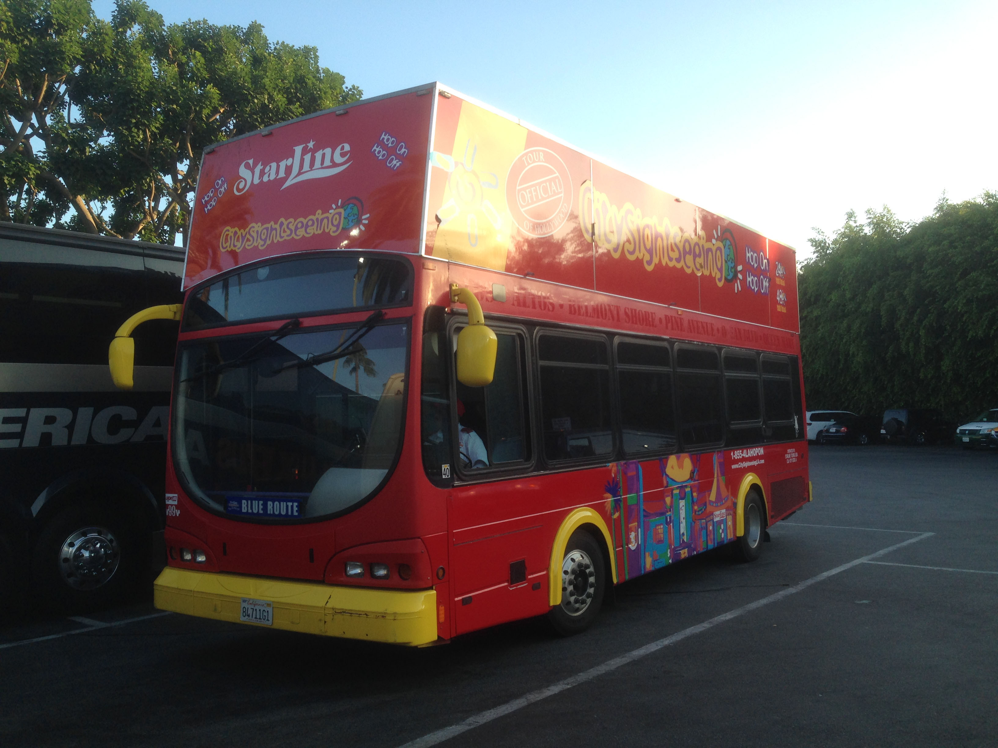 Another vehicle with British connections in the fleet is 99, the Wright based American Optimus Opus. It follows the pattern of American converters, bereft of native doubledeckers to work on, taking a singedeck bus and adding an open extra deck on top to produce an open toppper. This diminutive bus is seen at Universal Studios for a Halloween themed fright night in October 2014.