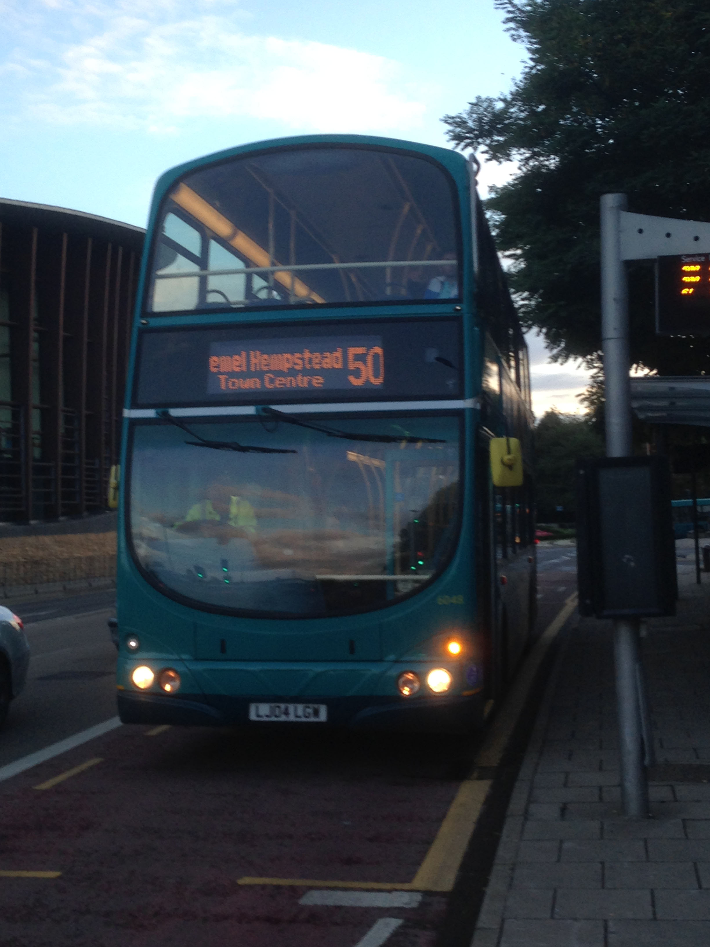 From Arriva London Wright Pulsar Gemini bodied VDL DB250 DW78 (LJ04LGW) had joined the Shires as 6048. It is on an evening run in September 2016 from Aylesbury to the home of many former cockneys 'emel 'empstead. Just to add to the confusion with its undersized aperture for the destination display it is on route 500, not the 50 from Aylesbury to Wendover!