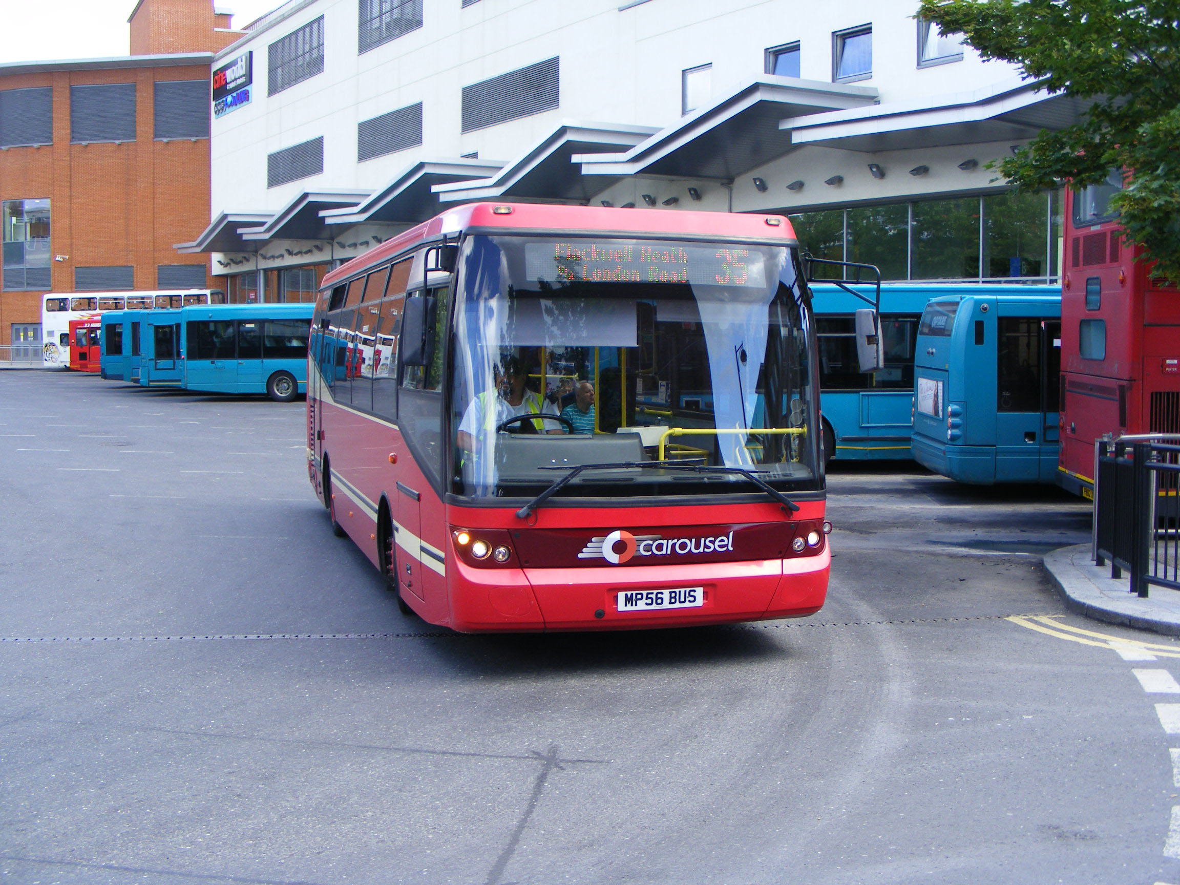 Probably the oddest vehicle in the Carousel fleet was this Turkish built BMC 850 Hawk, MP56BUS. It is seen leaving Wycombe Bus Station on route 36 to Flackwell Heath in July 2011.