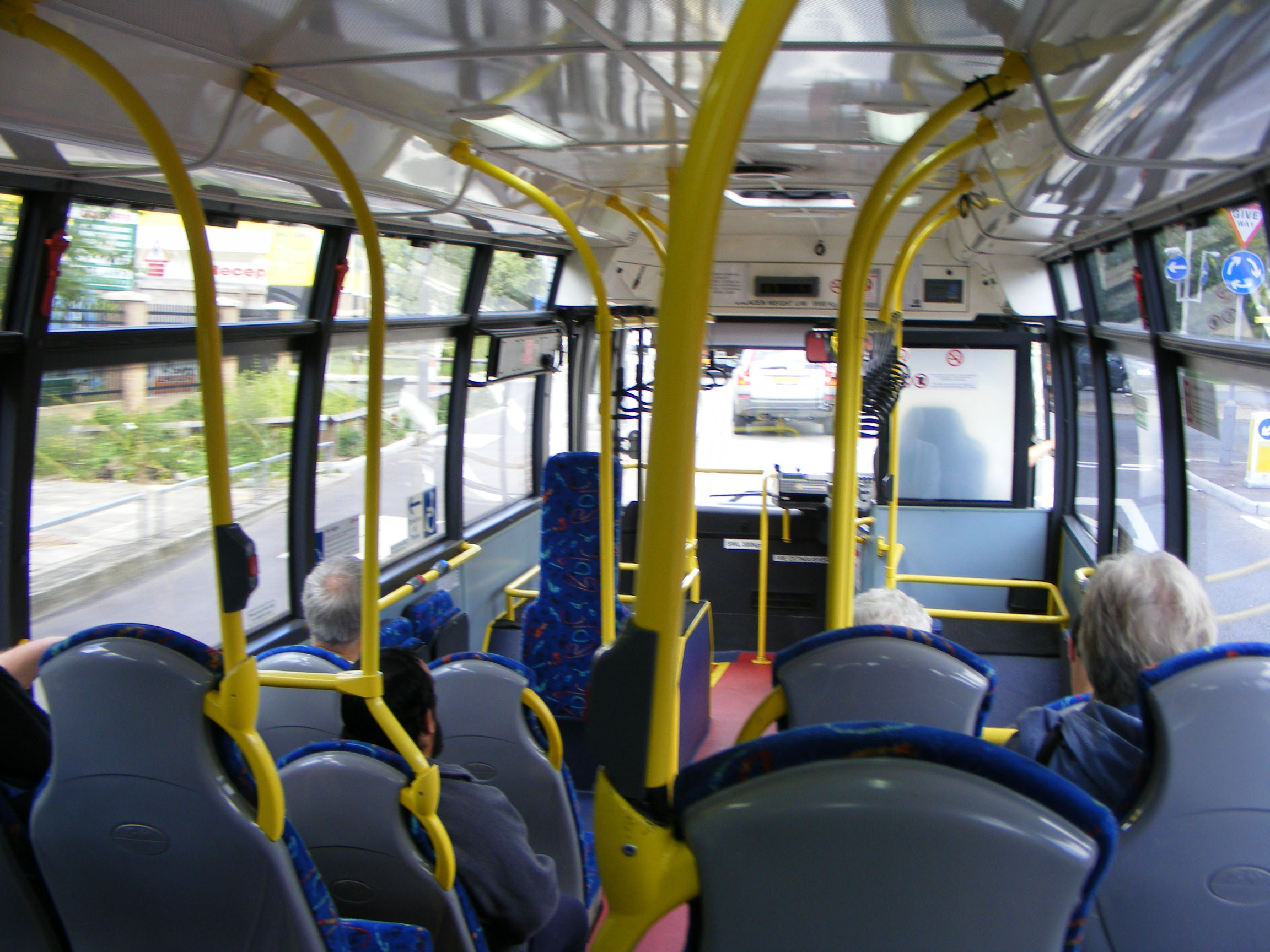 Earlier that day a ride along the London Road on the bus shows the interior layout. The rear seat, from where the picture was taken is perched high above the engine. Curved sides are another notable feature.