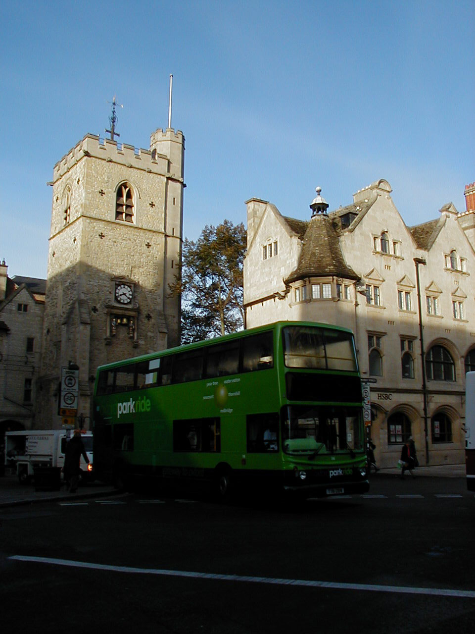 A few Park & Ride Tridents were been painted into standard Oxford Bus livery, as 102 (T102DBW), passing Park & Ride 118 (T118DBW), illustrates. Both buses moved to Carousel in 2014. |