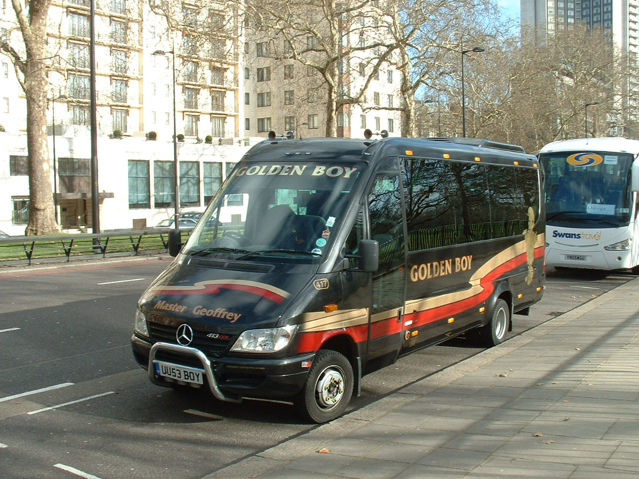 Seen in Park Lane in March 2008 is Mercedes 413, Master Geoffrey, otherwise known as 417 (UU53BOY).