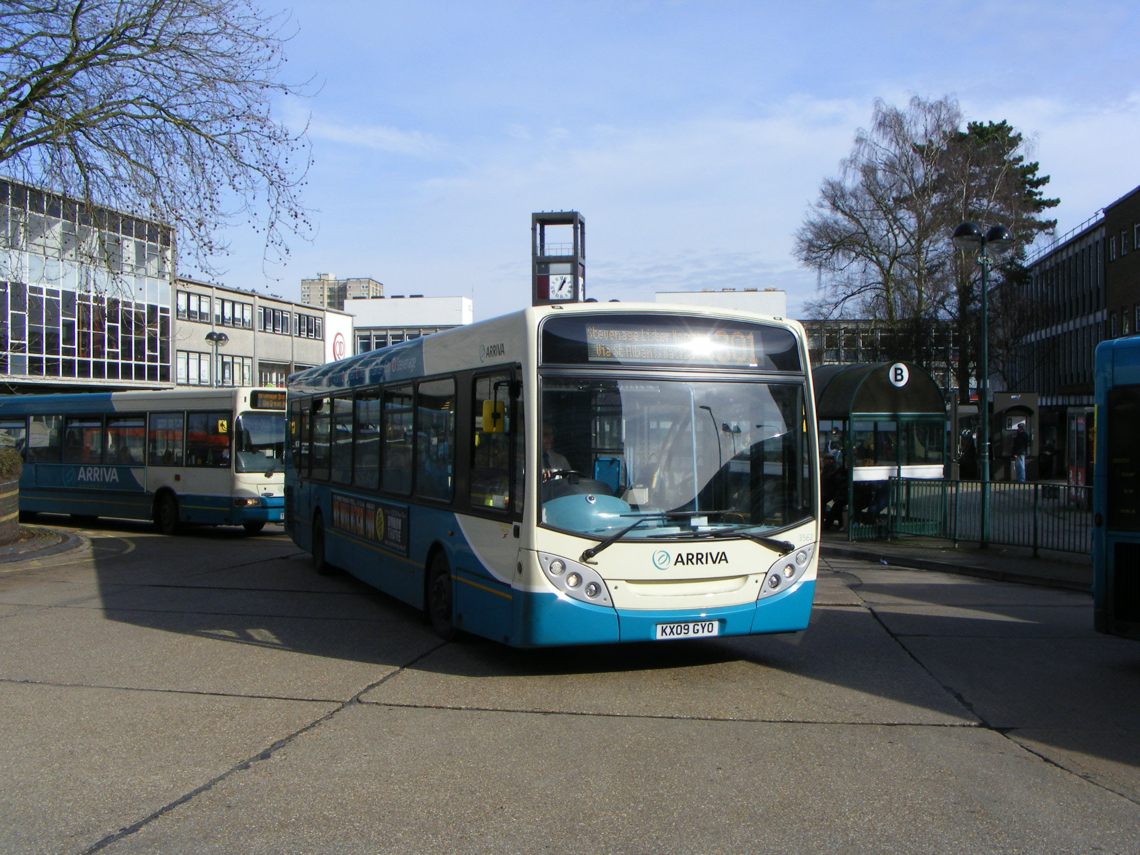 In February 2011 3562 (KX09GYO) is seen in Stevenage Bus Station having almost completed its two hour run from Hemel Hempstead.