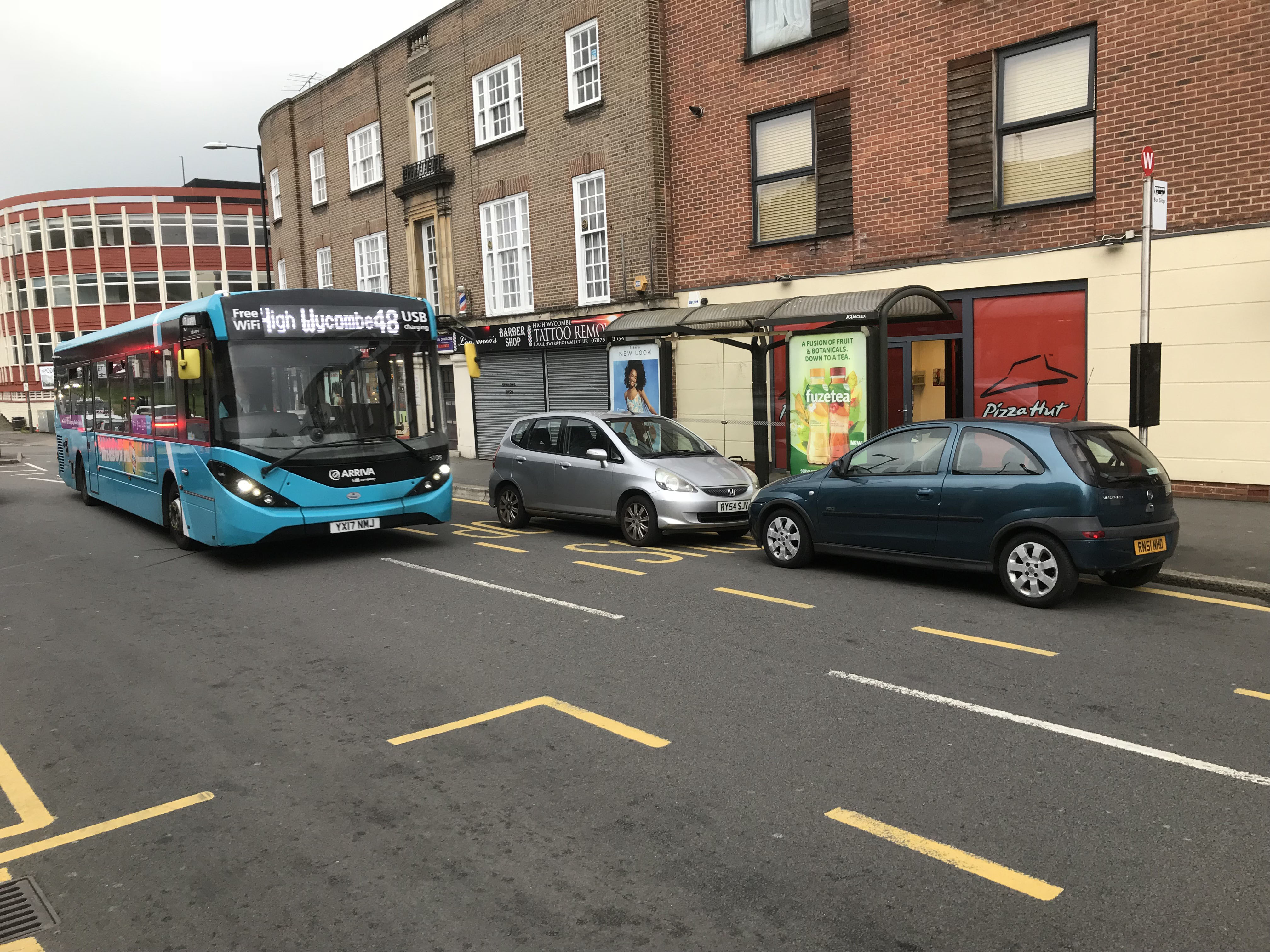 At least 3108 remained in Wycombe seen in Church Street on the 48 from Great Missenden in May 2018 and prevented from using the Church Street bus stop by the usual collection of Pizza Hut delivery drivers cars parked on the thick yellow line, which they obviously assume means no parking restrictions. All the Enviros left Wycombe, the last being sent to work the 724 (Hatfield - Heathrow) orbital route to help meet the Euro6 emission standards of Tfl's ULEZ.