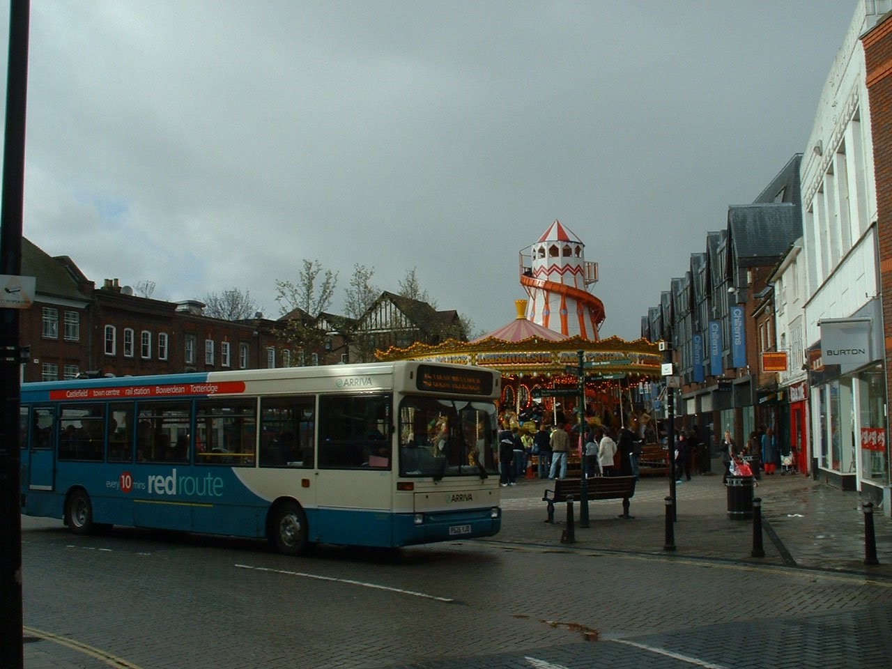 Dart 3826 (P526VJO) passes a fun fair set up in Frogmoor as part of the celebrations of the opening of the new Eden Shopping Centre in Wycombe in March 2008. The new Bus Station, opened over a year beforehand is an integral part of the Eden.