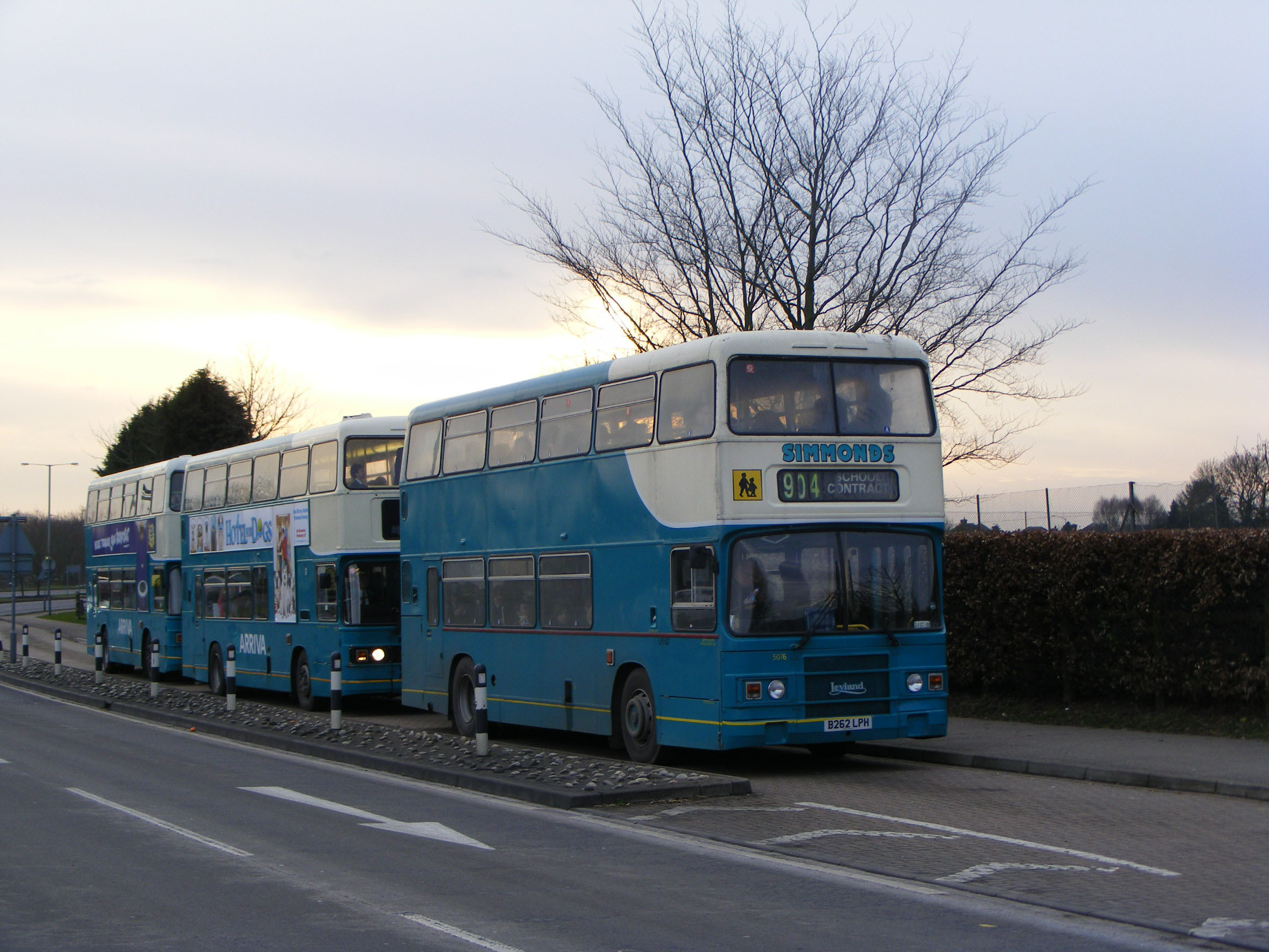 Former 5076 (B262LPH) was acquired by Simmonds Coaches of Iver in Buckinghamshire and is seen on a school contract outside John Hampden Grammar in High Wycombe in January 2009. The Roe bodied Leyland Olympian has retained Arriva livery and sits happily with the two former Arriva London ECW bodied Olympians behind still serving Arriva the Shires. |