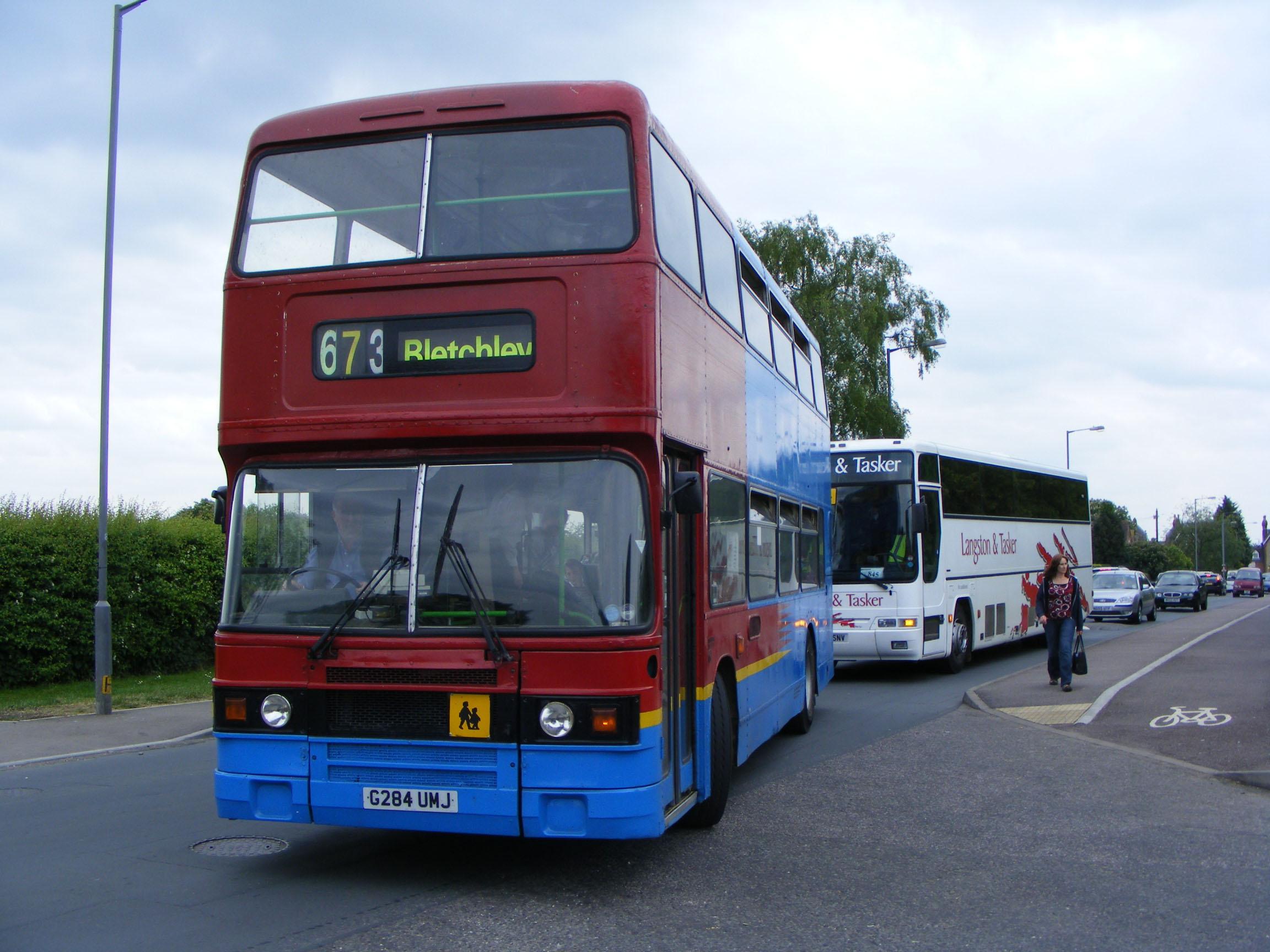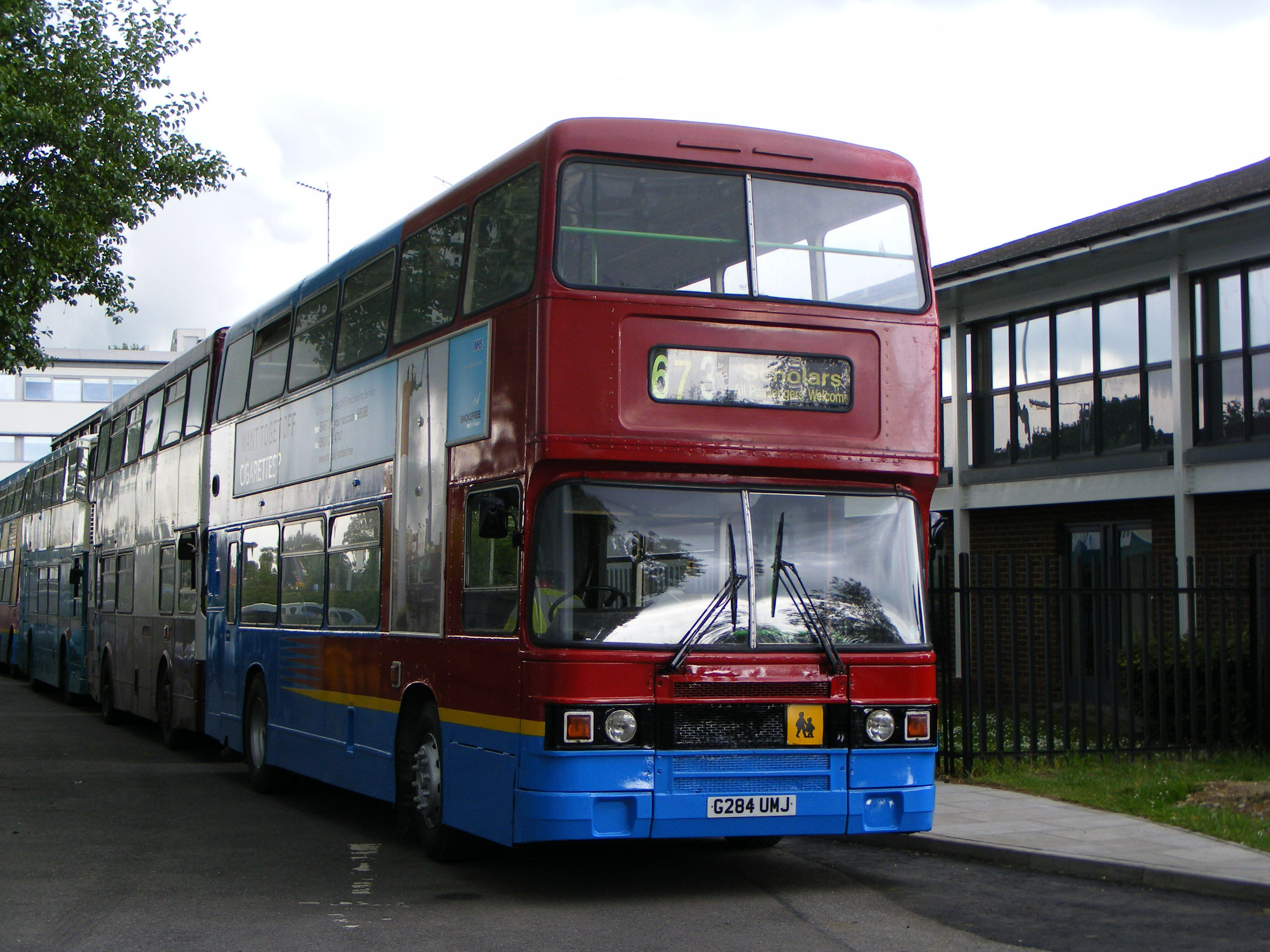 Red Kite of Leighton Buzzard used 5114 (G284UMJ) on school services to Aylesbury grammar schools. It is seen outside Sir Henry Floyd Grammar in June 2009. Red Kite had presumably acquired former Go Northern Olympians and adopted their livery as the bus is thought not to have ventured north of Watford Gap, |