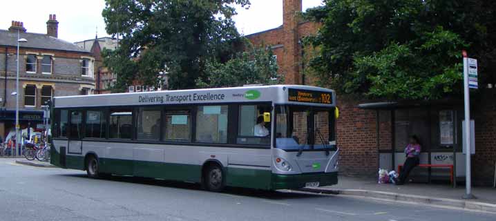 Reading Buses took about updating the Newbury fleet, ousting Optare products with secondhand purchase of Dennis Darts from a varity of sources. Seen in Reading Station on the 101 in July 2008 is 605 (GU52HKA) a Falkirk built Pointer bodied Dart SLF new as Jenkins Coastal Coaches of Newick 119.
