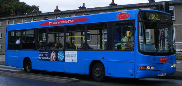For a number of years Harlow has been a hotbed of competition for local bus services. Incumbent operator, Arriva - one of their Darts is departing in the background - transferred the operation to fellow sunbsidiary Tellings Golden Miller expected to be more fleet of foot. The operation was rebranded Network Harlow with a blue livery, largely applied to the vehicles that were deployed in the town before. So this Wright bodied Volvo B6BLE, not the most loved small bus, seen heading for the Bus Station in August 2012, still carries its old fleet number, 3254 (V254HBH). In 2015 changes at a higher level shifted the ball game yet again with the operations leaving TGM's hands, the Arriva name and livery reappearing and the control passing to what is effectively the Arriva incarnation of Maidstone & District. |
