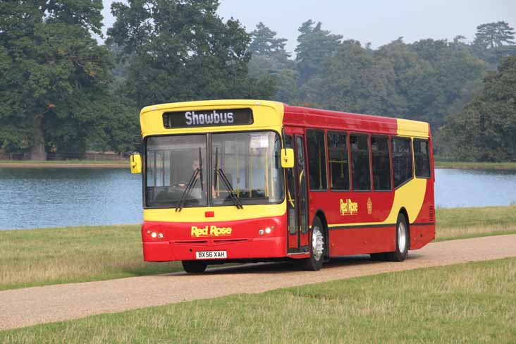 Sister vehicle 50532/PVl95 (W495WGH) has been painted in a special livery to promote the new express service from Aylesbury Station to Bicester Shopping Village. The metallic paint is Khan Red which is the new standard for Redline and Red Rose. The bus is seen promoting SHOWBUS in August 2015.