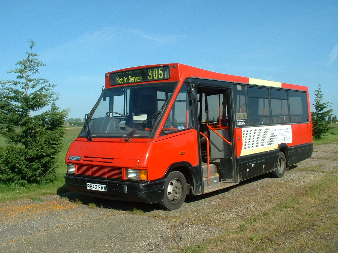 Heading south on the M1 from Optare's Rotherham plant, R843FWW - a former Metrorider demonstrator acquired for the fleet in August 2000, rests at the Motorway Services.