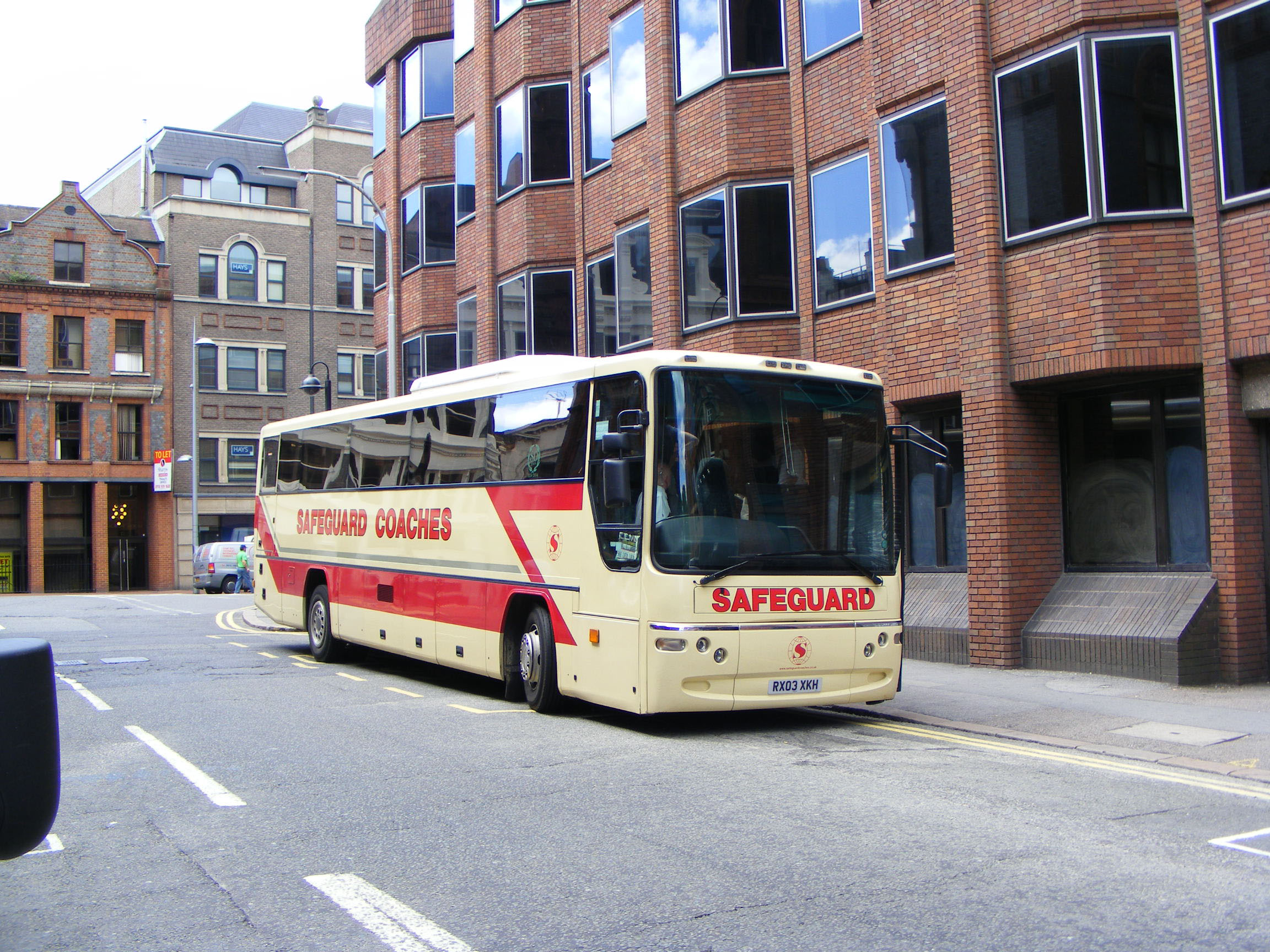 With the Millennium Dome as the backdrop in August 2000, three Safeguard Coaches await the return of their passengers. Nearest the camera is a Volvo B10M with Plaxton Paramount coach work, E514EFX, which was new to Excelsior of Bournemouth - it may be that there was no need for a repaint upon acquisition. |