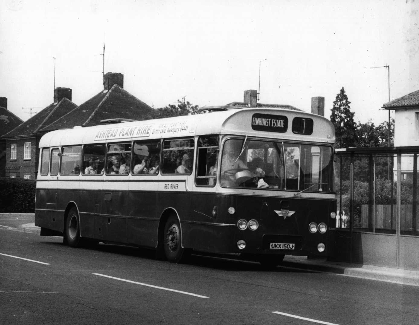 Red Rover bought a pair of Plaxton Derwent bodied AEC Reliances in keeping with its coach deliveries at the time. They arrived either side of Christmas 1970 and were regular performers on the Saturday south coast express services. This photograph from the company archives of 5 (UKX150J) shows it on the Aylesbury town service on Elmhurst Estate. The town service needed one bus doing an hourly repeat of three services to Quarrendon Estate, Belgrave Road via Bicester Road (route 12) followed by an Elmhurst (14) and a Quarrendon Estate, St Peter's Avenue via Buckingham Road (route 13). In practice this work was intermingled with country services providing a variety of vehicles for town service passengers and a variety of work for the driving team. All the services competed with United Counties in the town, but Red Rover's were so reliable they took the lion's share of the passengers. As for 5, later 105, it passed to Tillingbourne when ousted, with others, by a trio Caetano bodied Bedfords.