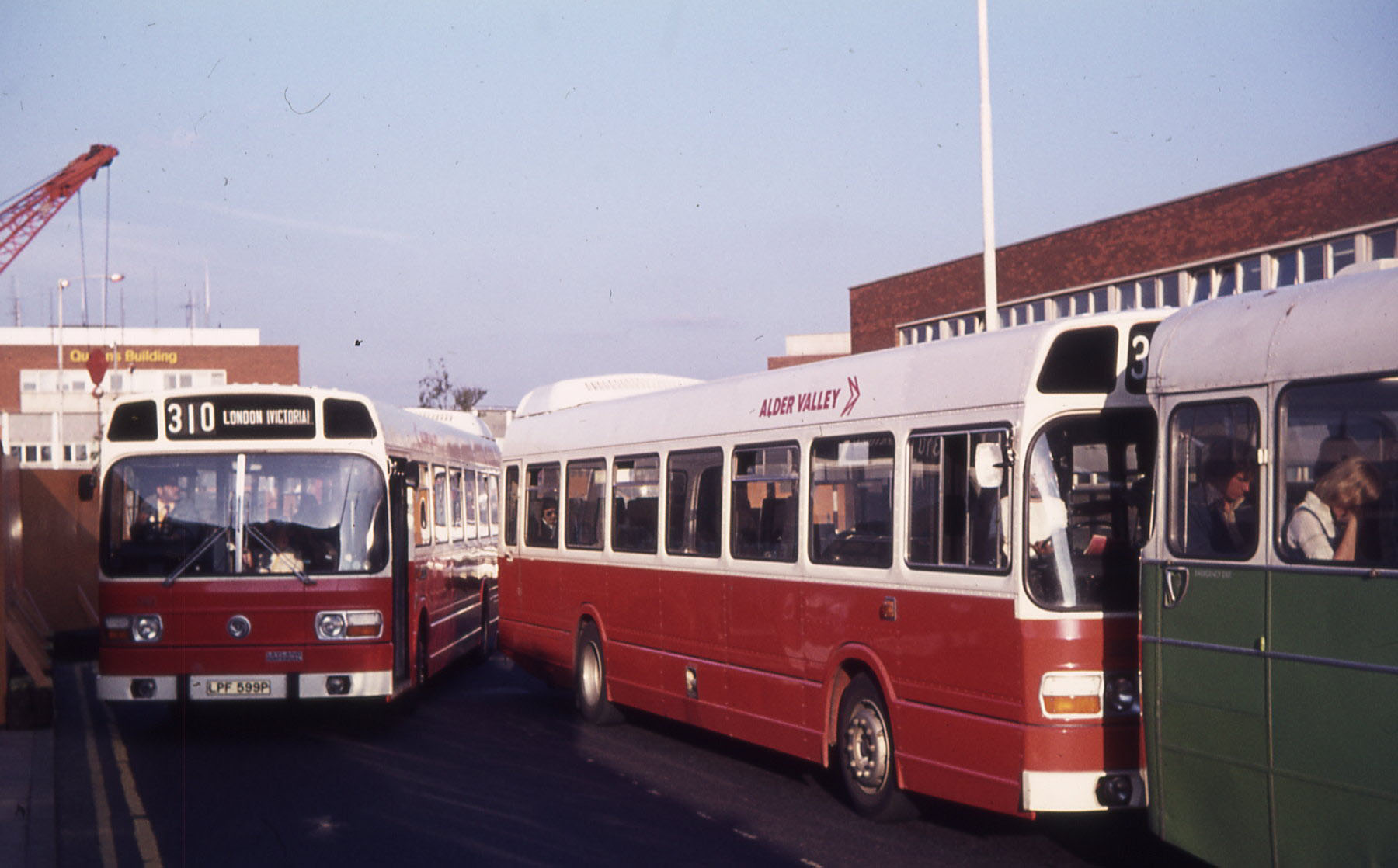 At one time Heathrow Airport was a mecca for Alder Valley Nationals on express routes from Reading to London. National 241 (LPF599P) edges round a fellow fleet member with the old Terminal 2 in the background.