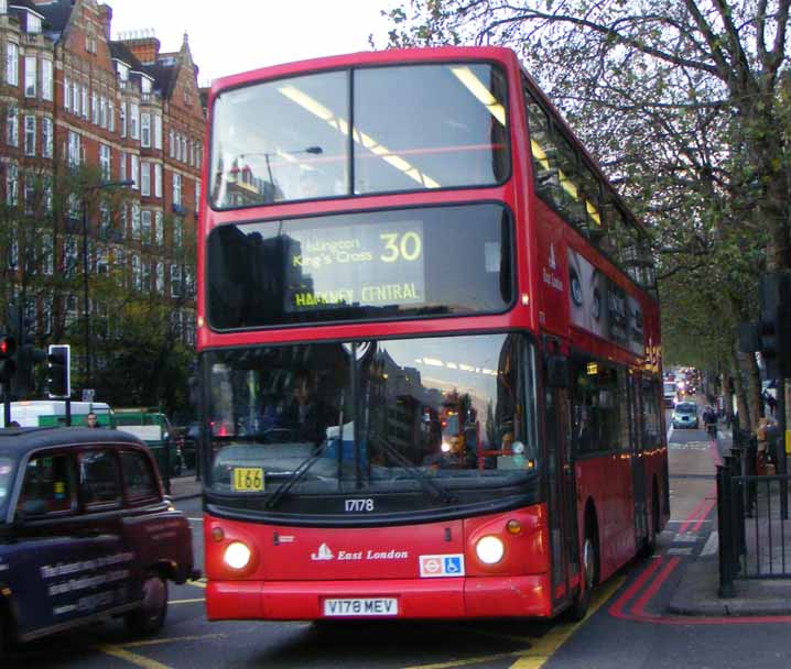 East London Dennis Trident Alexander ALX400 17178 (V178MEV) in autumn 2009 at work on the 30 in Marylebone High Road.