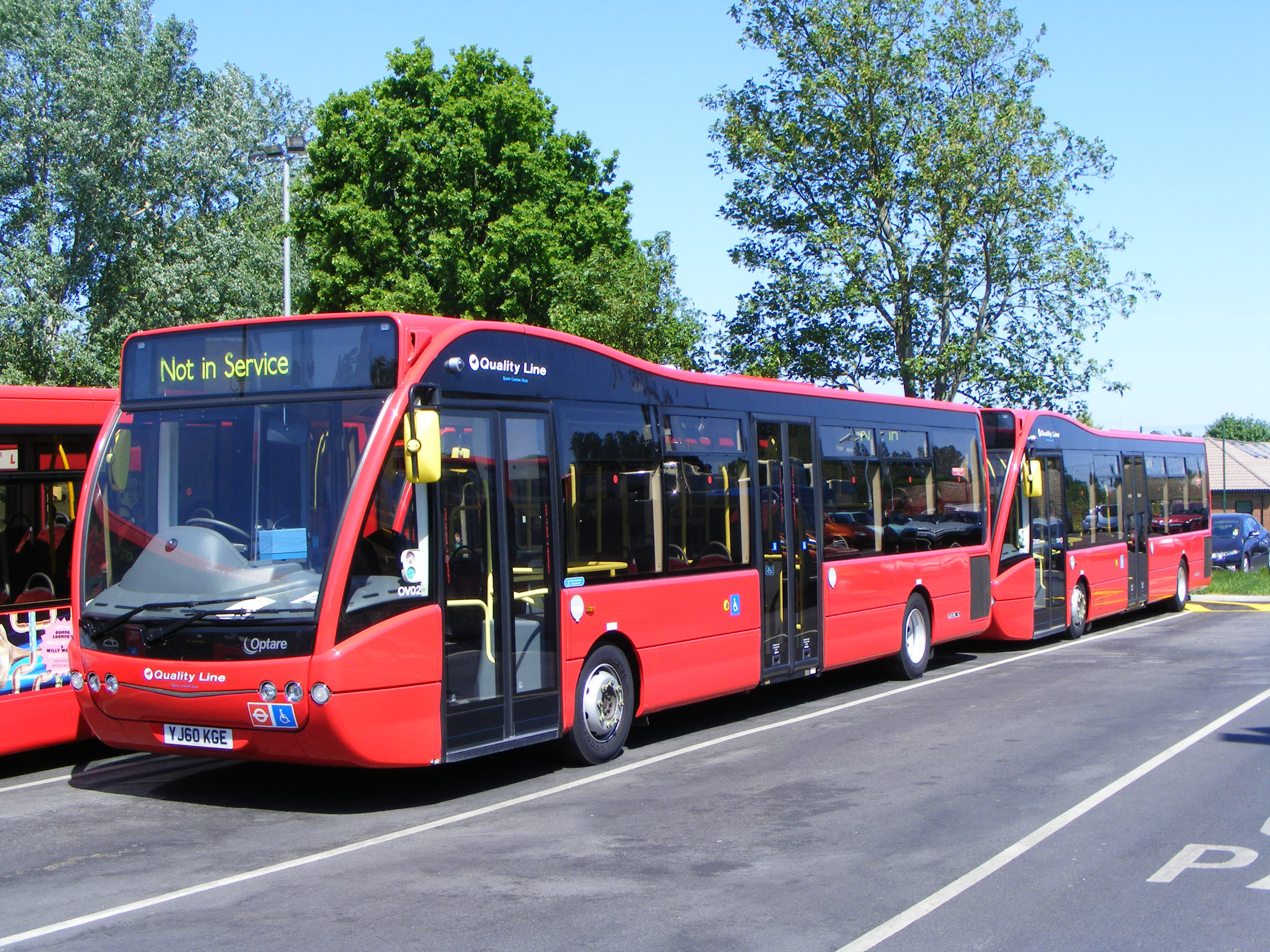 A pair of Epsom's Optare Versas in the yard in May 2011 with OV02 (YJ60KGE) in front.