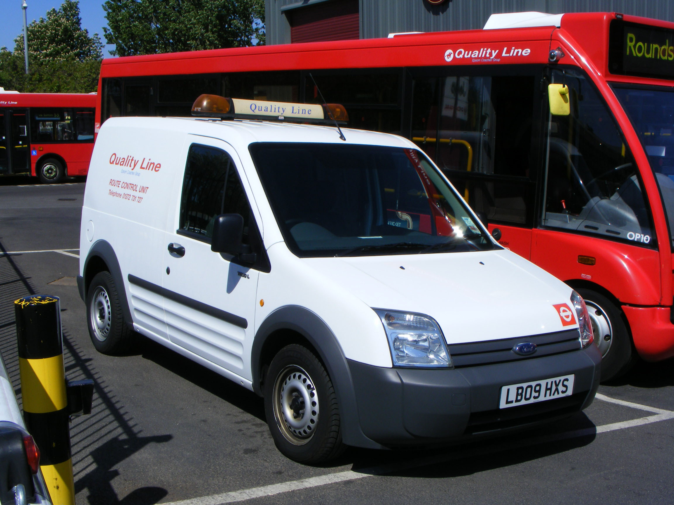 This smart Epsom Buses Ford Transit Connect van, LB09HXS, is seen along side Solo OP10.
