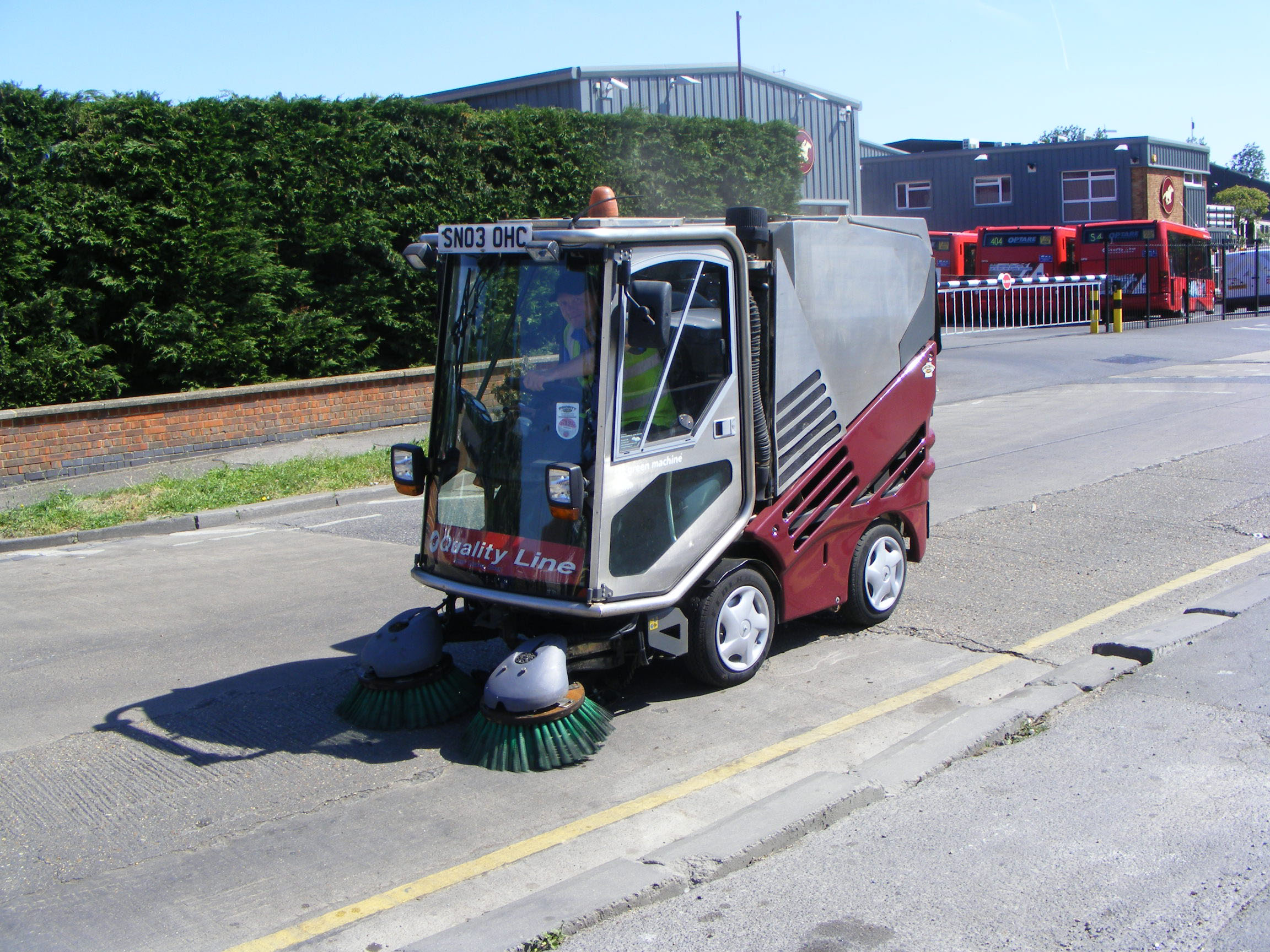 There cannot be many bus companies with their own roadsweeper, but this Quality Line branded machine, SN03OHC was busy at work outside the depot in May 2011. Probably a requirement linked to the planning permission for the company's new depot.