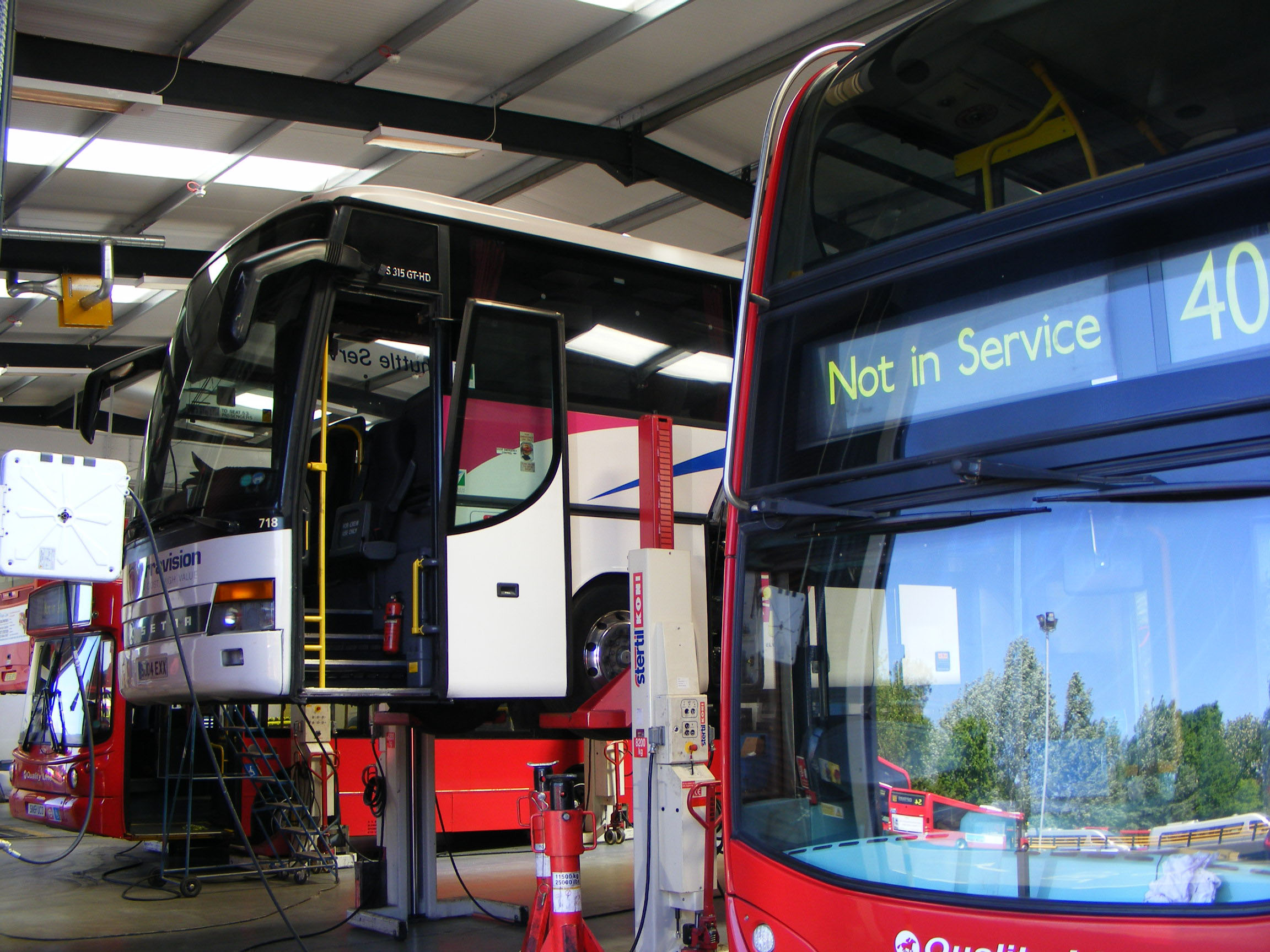 Undergoing maintenance in the depot in May 2011 was Setra S315GT-HD 718 (BU04EXX), one of the fleet used on contract to Italian based airport operator, Terravision. Several operators have been involved in their contract operation.