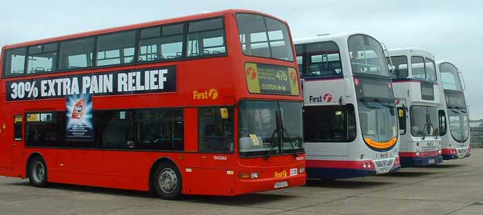 * Despite its 6 years, TN32865 looks good against the newer Gemini bodied Volvos from further afield. Sandwiched between the Gemini is ex First London Northern Counties bodied Olympian.once VN903 (T903KLF). VN903 was delivered to Centrewest only 4 months before TN865. It was part of the last batch of non low floor deckers for the capital. It was at the time serving that other republic, in South Yorkshire. |