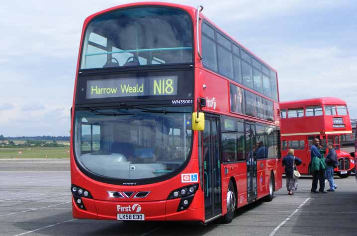 WN35001 (LK58EDD) put in an appearance at the 2009 North Weald. It is the Wright integral bus based on VDL chassis components and whilst the model has proved popular with Arriva was thus far unique in the First London fleet and indeed nationwide with First. |