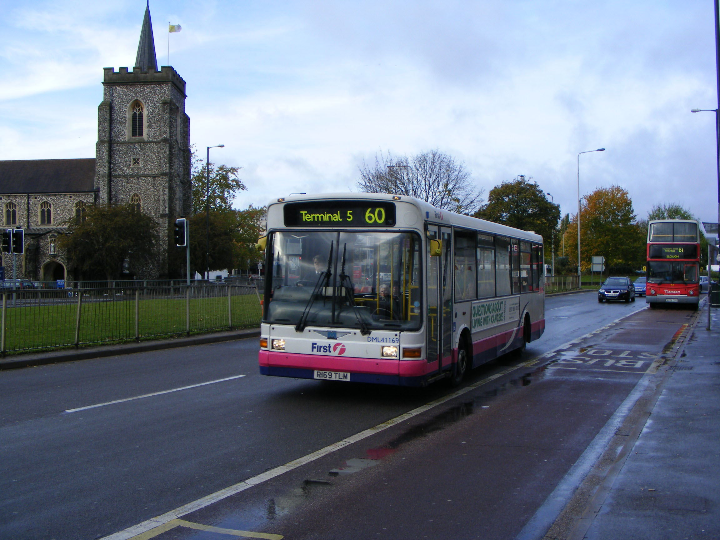 First Berkshire, under common management with First London, receives a lot of London cast offs and this Marshall bodied Dart SLF 41175 (R175TLM) is seen at work in Bracknell in March 2011. ![]() |