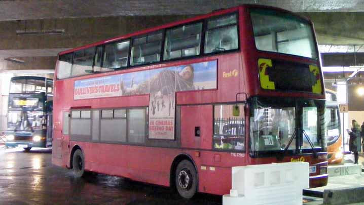 The Reading blockade over Christmas in 2010 saw all manner of buses and coaches deployed on rail replacement services to replace the train links caused by Reading Station's closure. This former London Trident is seen in the old Thames Valley Bus Station, unused for many years, but pressed back into service for the blockade. As can be seen from the destination blind, TNL32900 (V990HLH) is in the throws of conversion for service with First Berkshire.