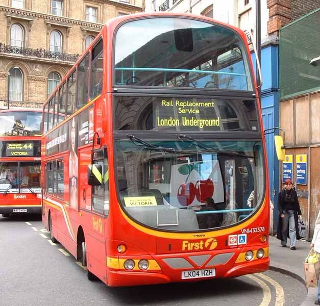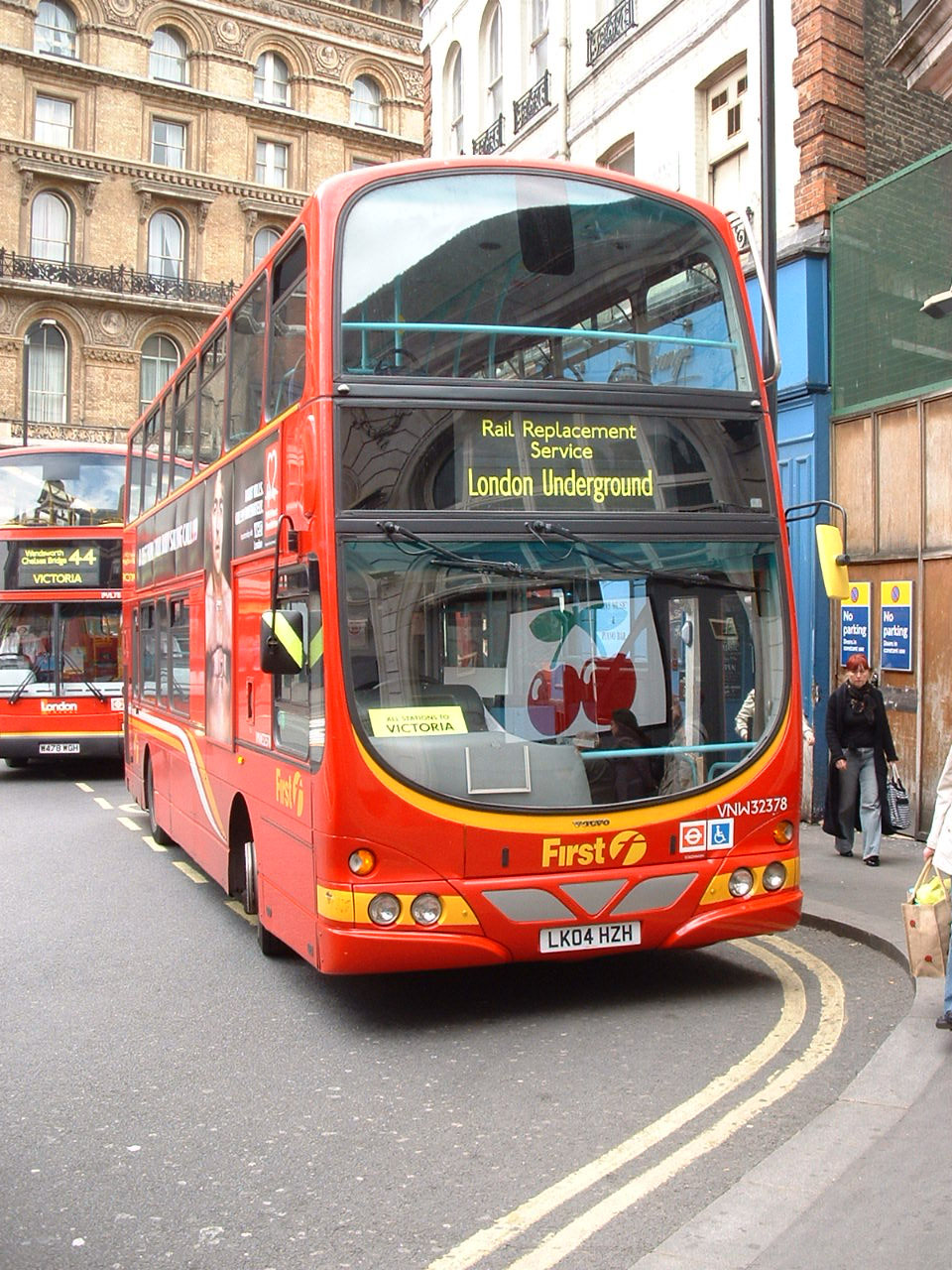 Volvo 32394 (LK04HXC) is seen in Kensington High Street on the more recently introduced 328 service. Fortunately 32394 sports the original First livery on these vehicles with the smiley yellow windscreen surround. Uncle Ken has seen these banned on more recent all red buses.