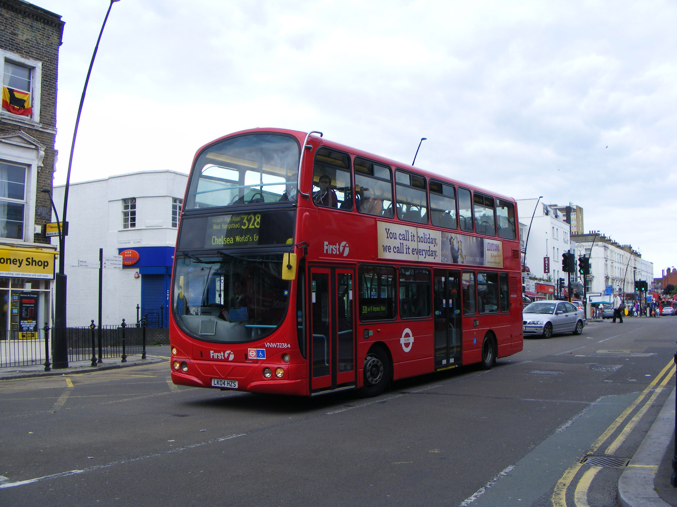 Seen in July the following year, a similar bus, VNW32384 (LK04HZS), has the same livery with the new addition of the LT bullseye. |