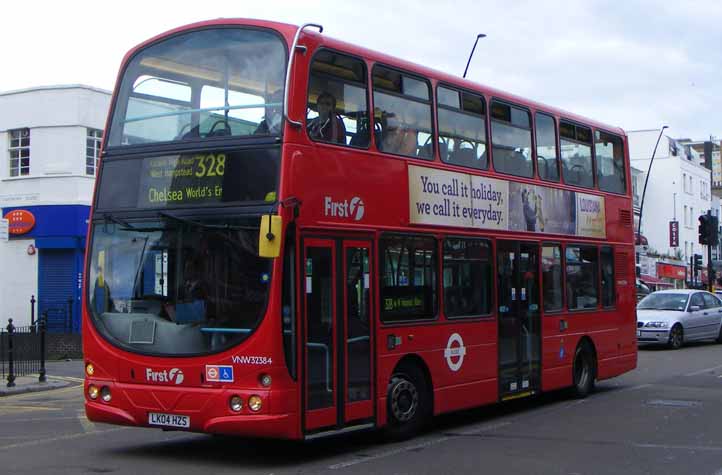 An unidentified First London Volvo B7TL Wright at White City on layover off the 31 in September 2011. It sports the new white logo livery. |