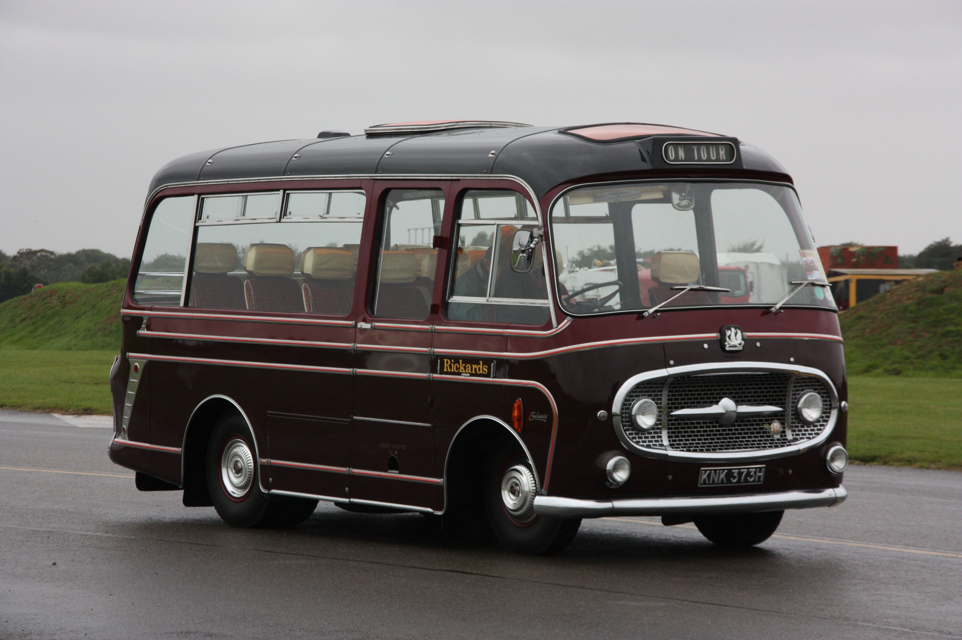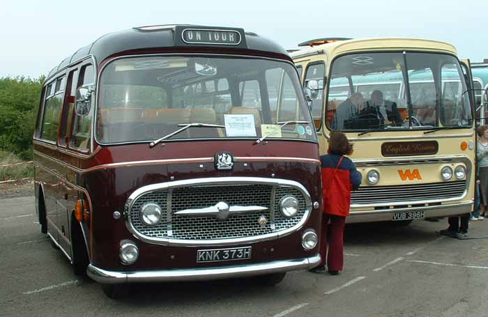 Rickards KNK373H was a Bedford J2 with Plaxton Embassy coachwork, it is seen alongside a similar coach at Millennium Showbus.