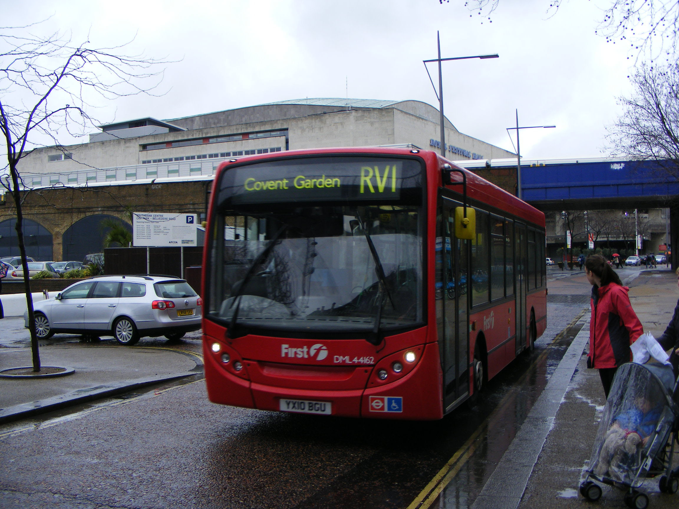 The RV1 service slipped into "normality" and in 2010 the service was largely maintained by standard Alexander Dennis Enviro200s like DML44162 (YX10BGU) seen on the South Bank in February 2011.