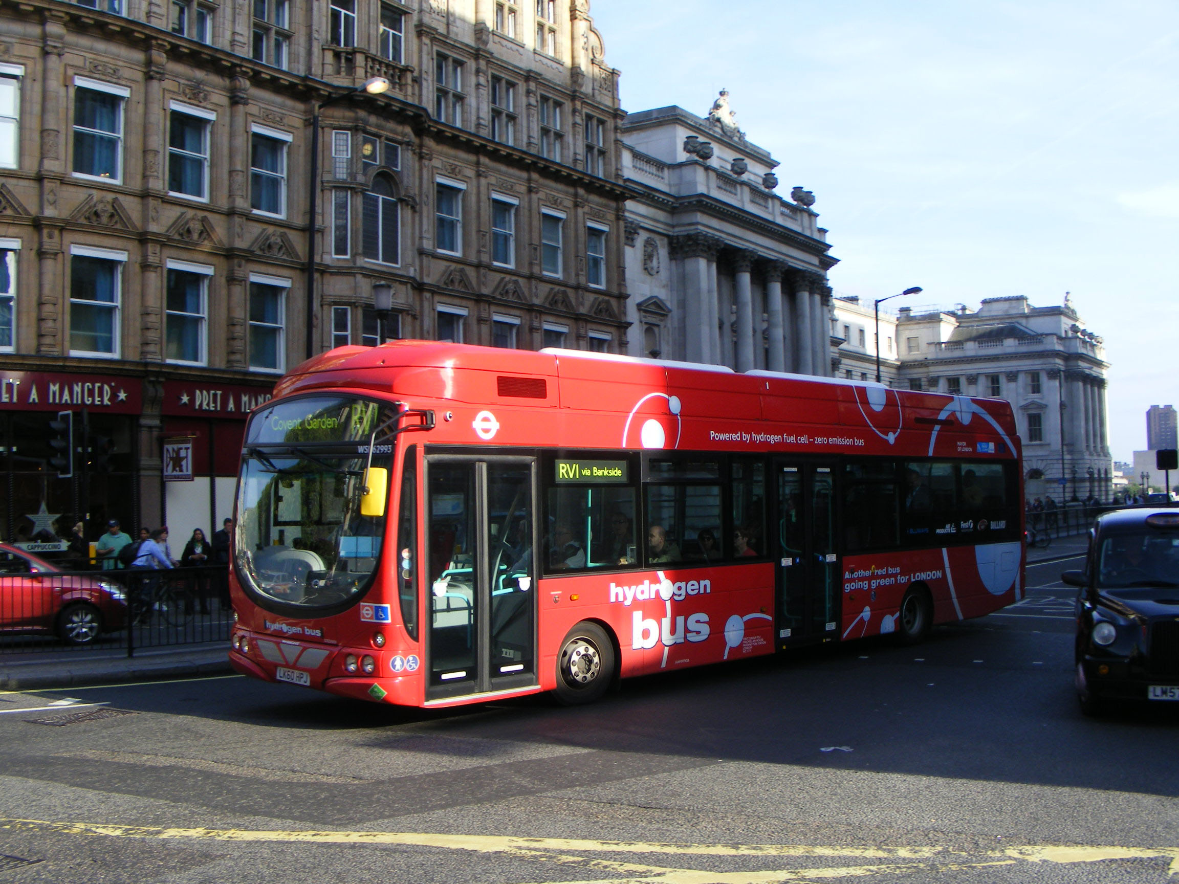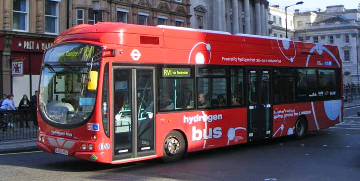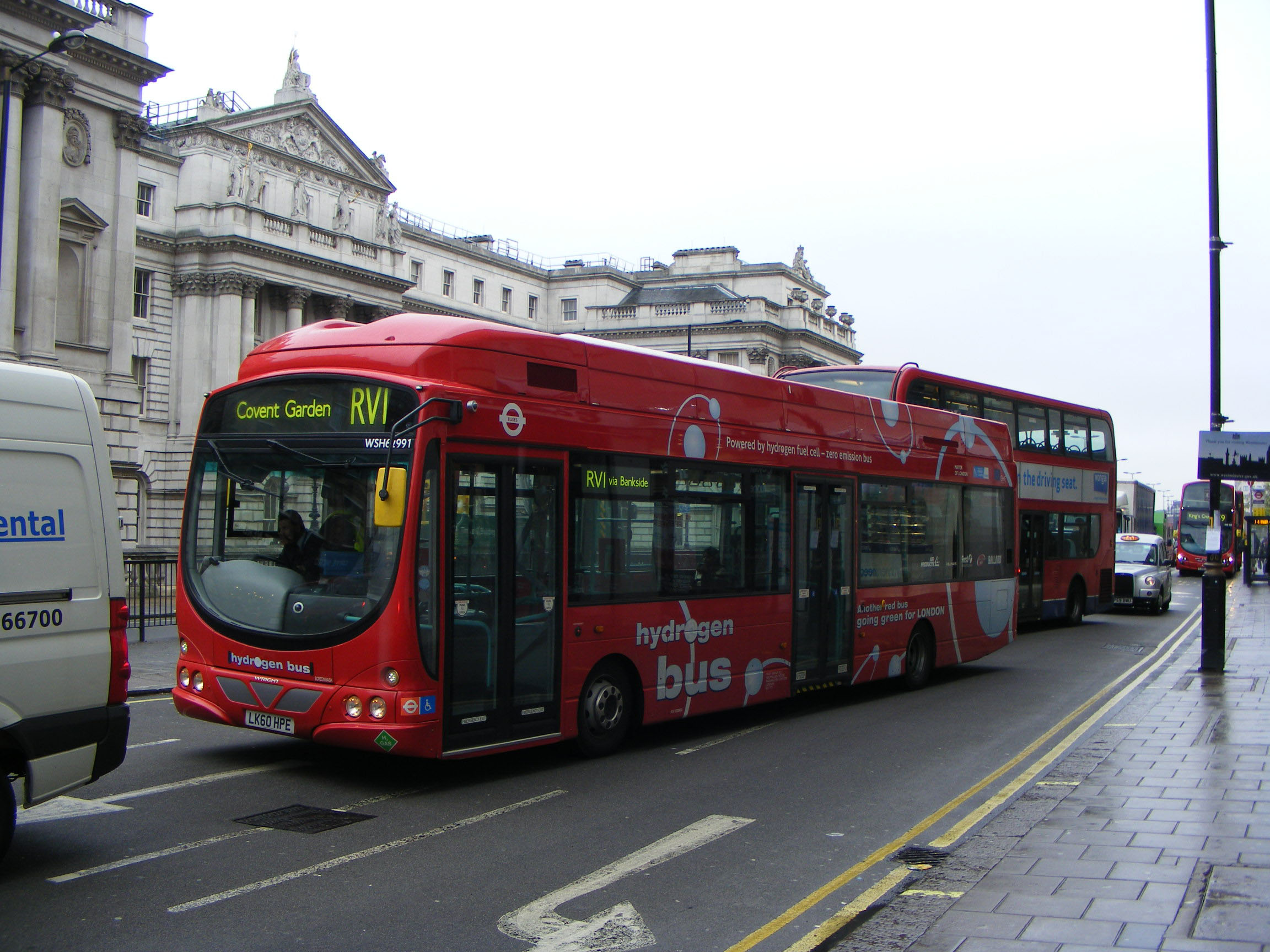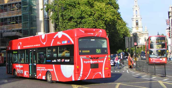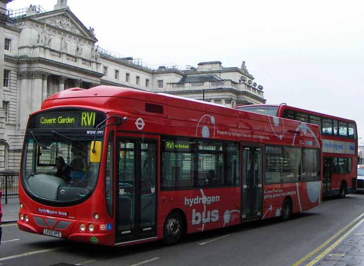 In May 2012 to prove that WSH62993 is not alone, WSH62991 (LK60HPE) got in front of the camera on Waterloo Bridge. The balance of the order for the fuel cell buses was delayed until after the Olympics due to the refuelling facility being in close proximity to the Olympic venue and it was decided to suspend the fuel cell buses during this peiod and postpone delivery of the rest of the batch.
