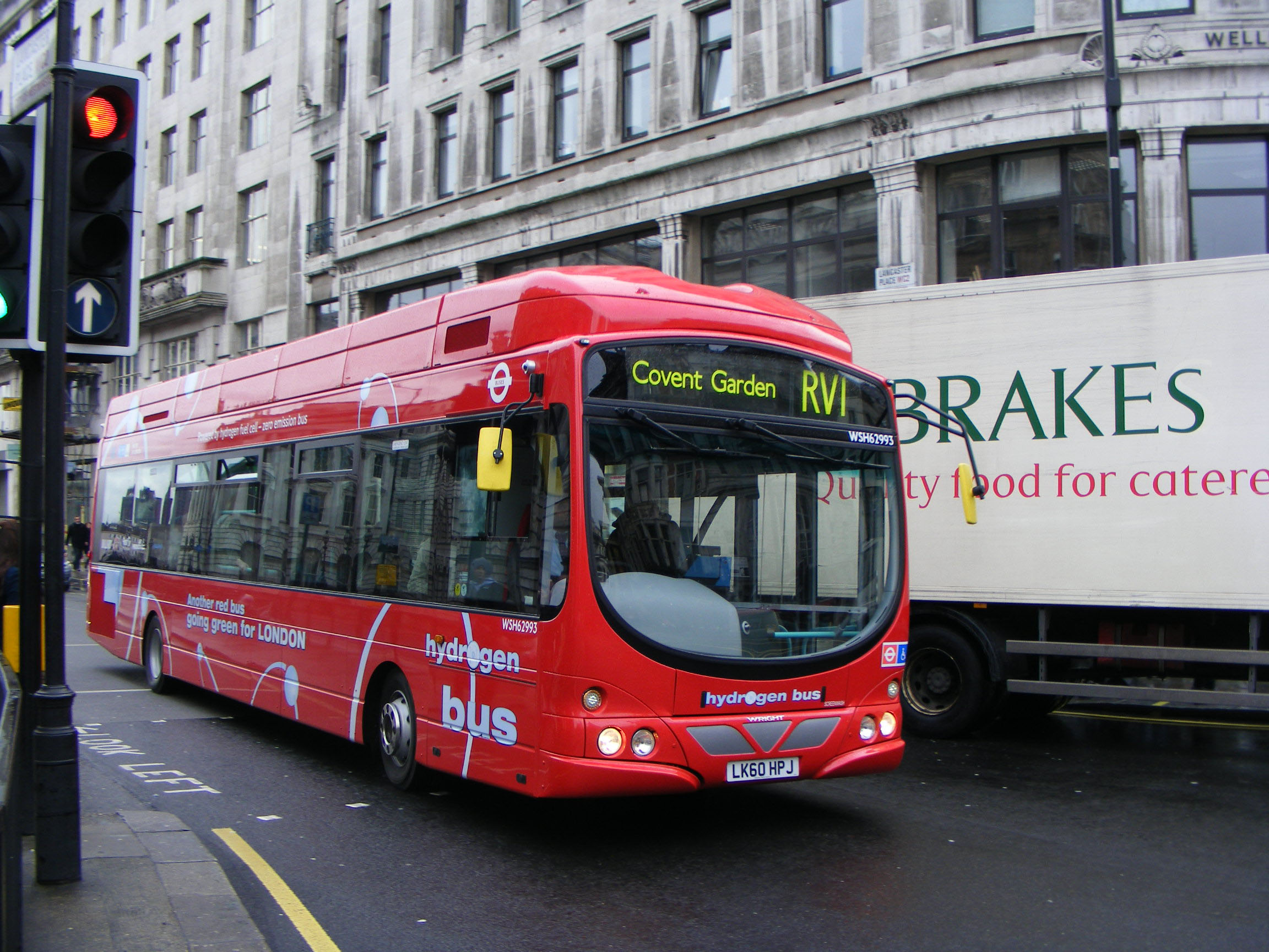 Wright Fuel Cell bus WSH62993 (LK60HPJ) returns to Covent Garden having just crossed Waterloo Bridge in February 2011.