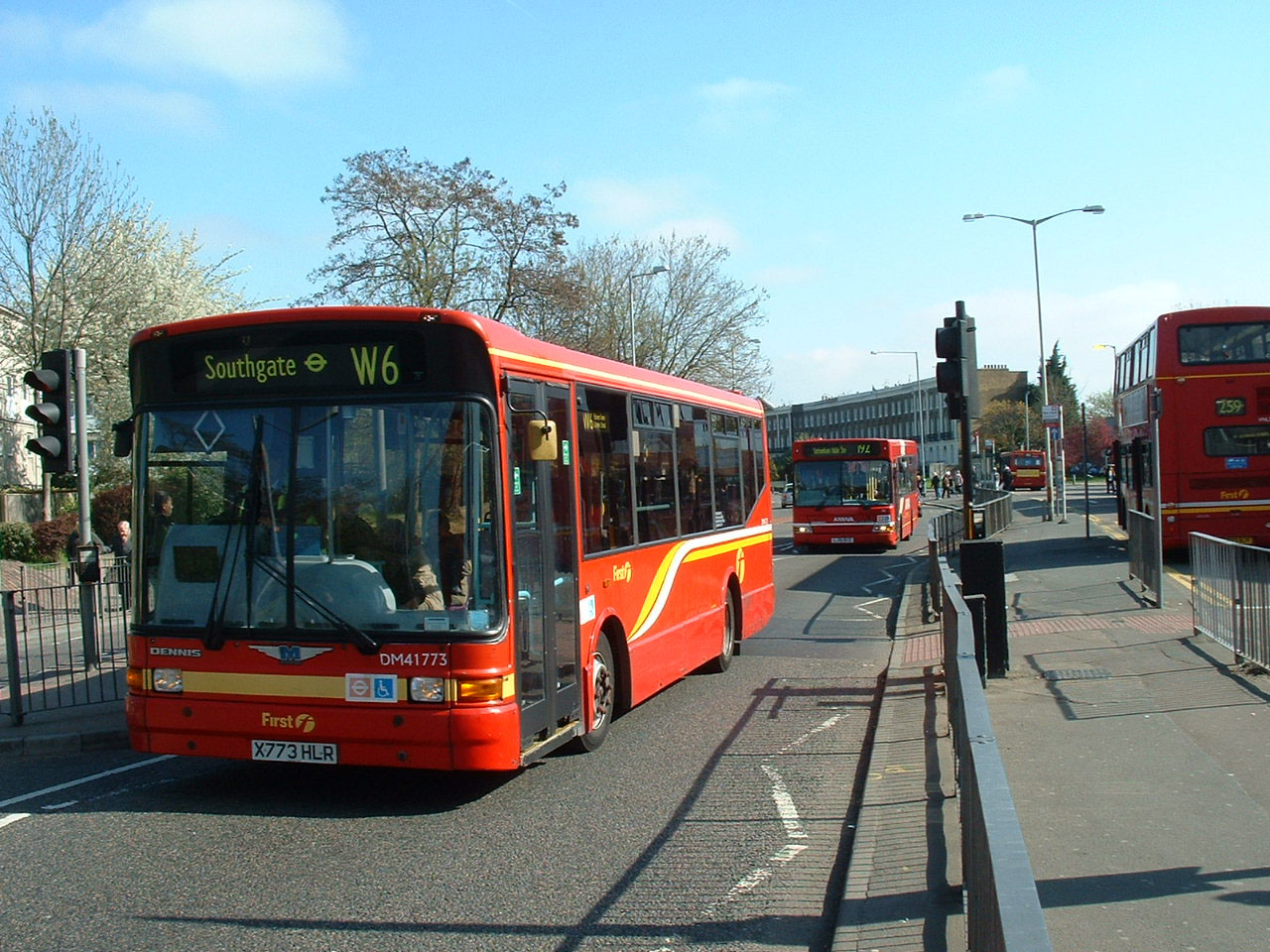 The PR1 service is another unusual route with its double letter route number. It runs around Park Royal, once home of the Routemaster, but the local offering from First Centrewest is this dual door 24 seat Marshall bodied Dennis Dart SLF DM441 (LN51DUNH). |
