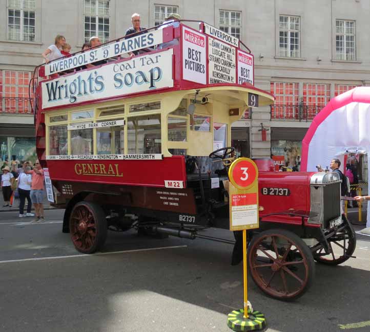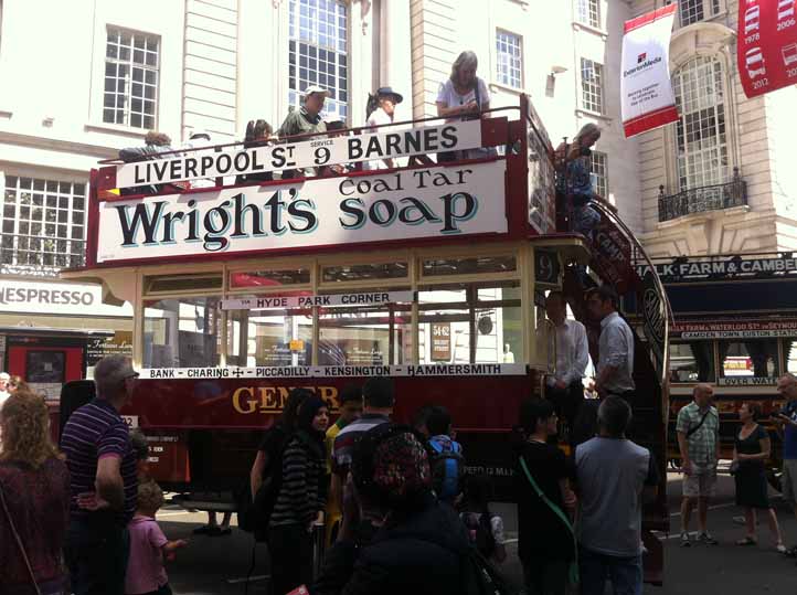 The 2014 Year of the Bus display in Regent Street in June was a celebration par excellence. Singling out a single star exhibit was difficult, but without a doubt the newly restored Ole Bill B2737 was something special. However the Street boasted no less than seven buses of this style on display. The former World War I workhorse was destined to visit France again that autumn aspart of the WWI commemorations. Picture ref A3419 |