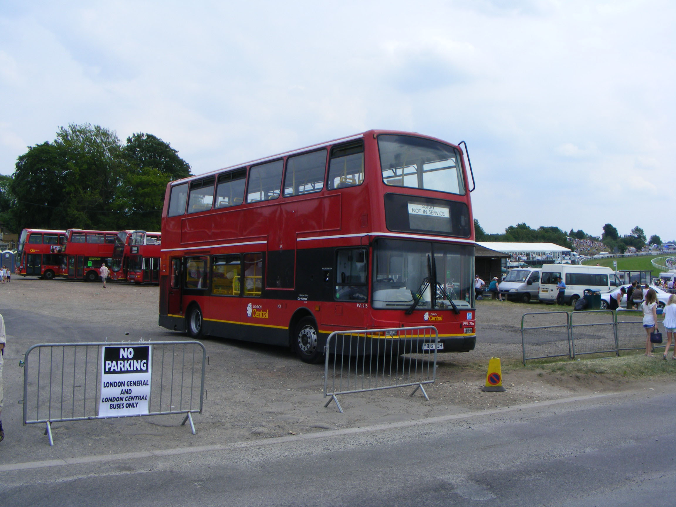 Taking a break on Epsom Downs at the 2010 Derby is PVL216 (Y816TGH), one of the variety of Go-Ahead buses deployed on the shuttle service to Epsom Station that day.