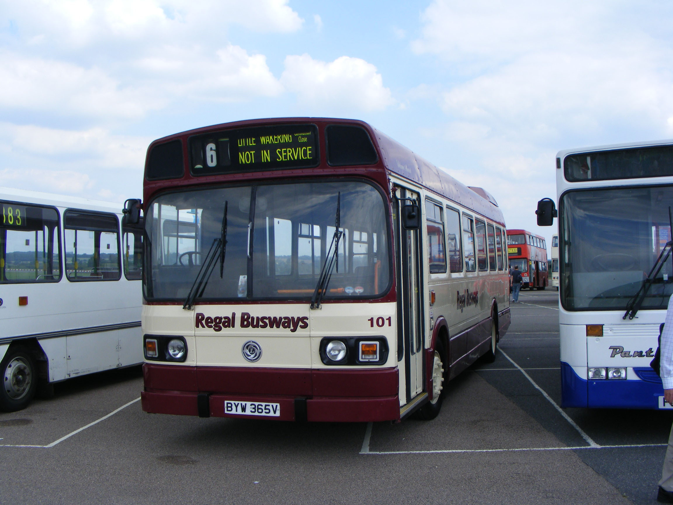 Seen at North Weald in 2011 is Regal Busway Leyland National 101 (BYW365V). Regal had acquired the National from Chase in 2007. |