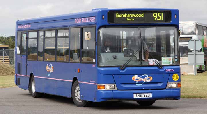 Former London United Dennis Dart Plaxton Pointer DPS576 (SN51SZO) joined Sullivans Buses for use on their special Thorpe Park Express service. The bus is seen at SHOWBUS 2012.