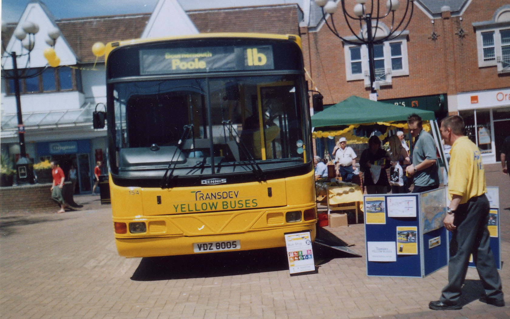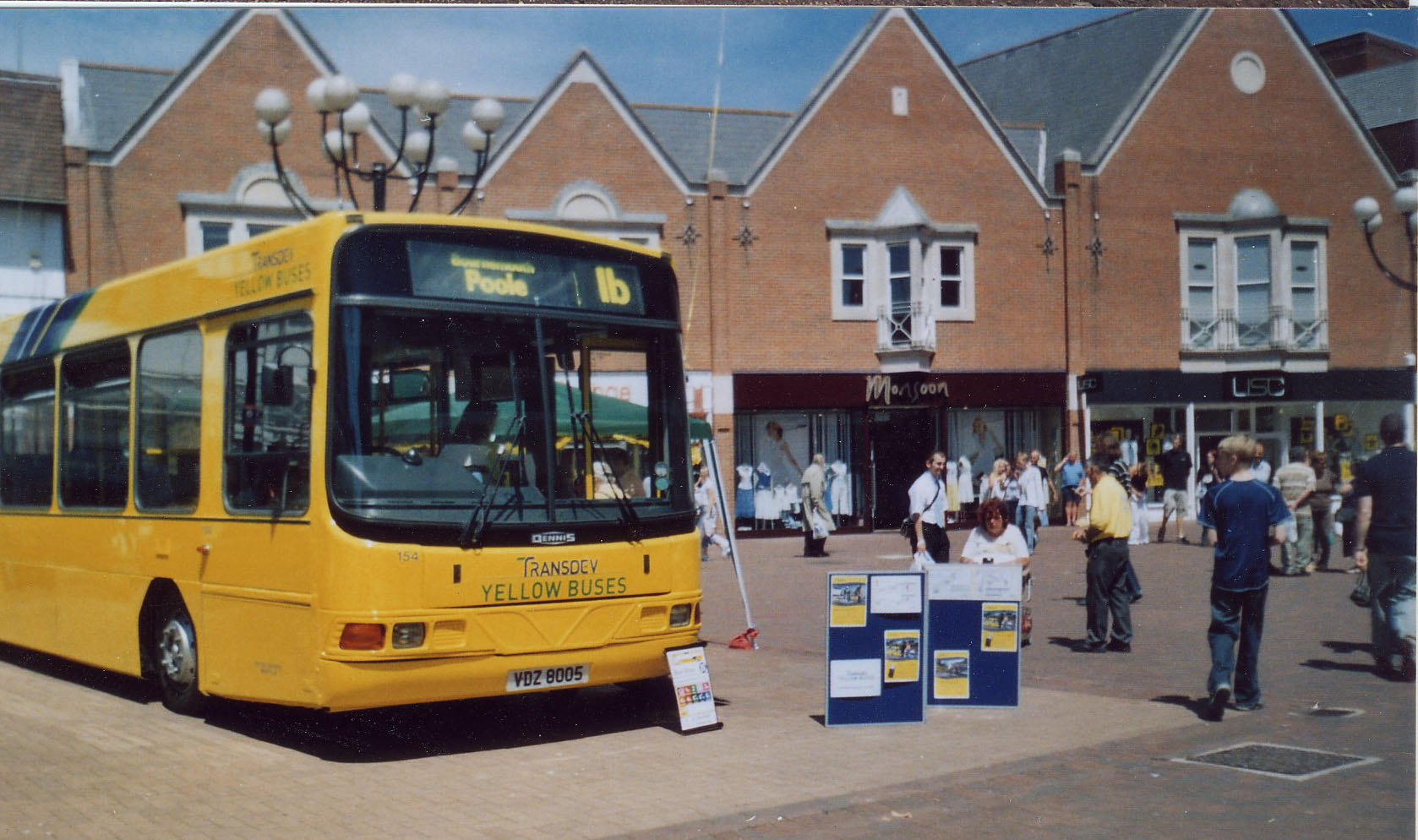 When Transdev acquired the Bournemouth Yellow Buses fleet they relaunched the company with a batch of Wright Cadet bodied Dennis Darts transferred from Transdev's London United subsidiary. These buses received a new brighter yellow livery with a blue sash.