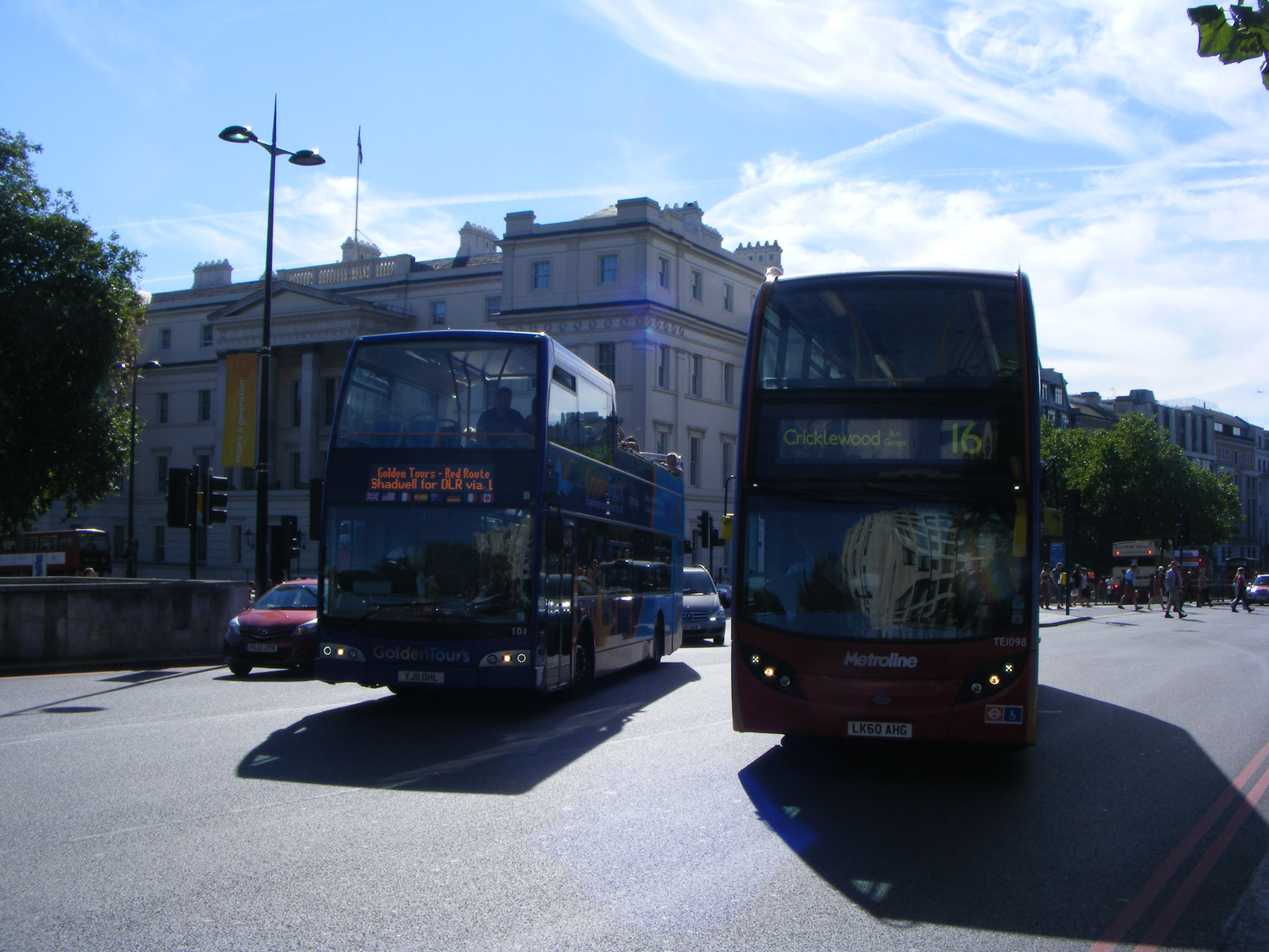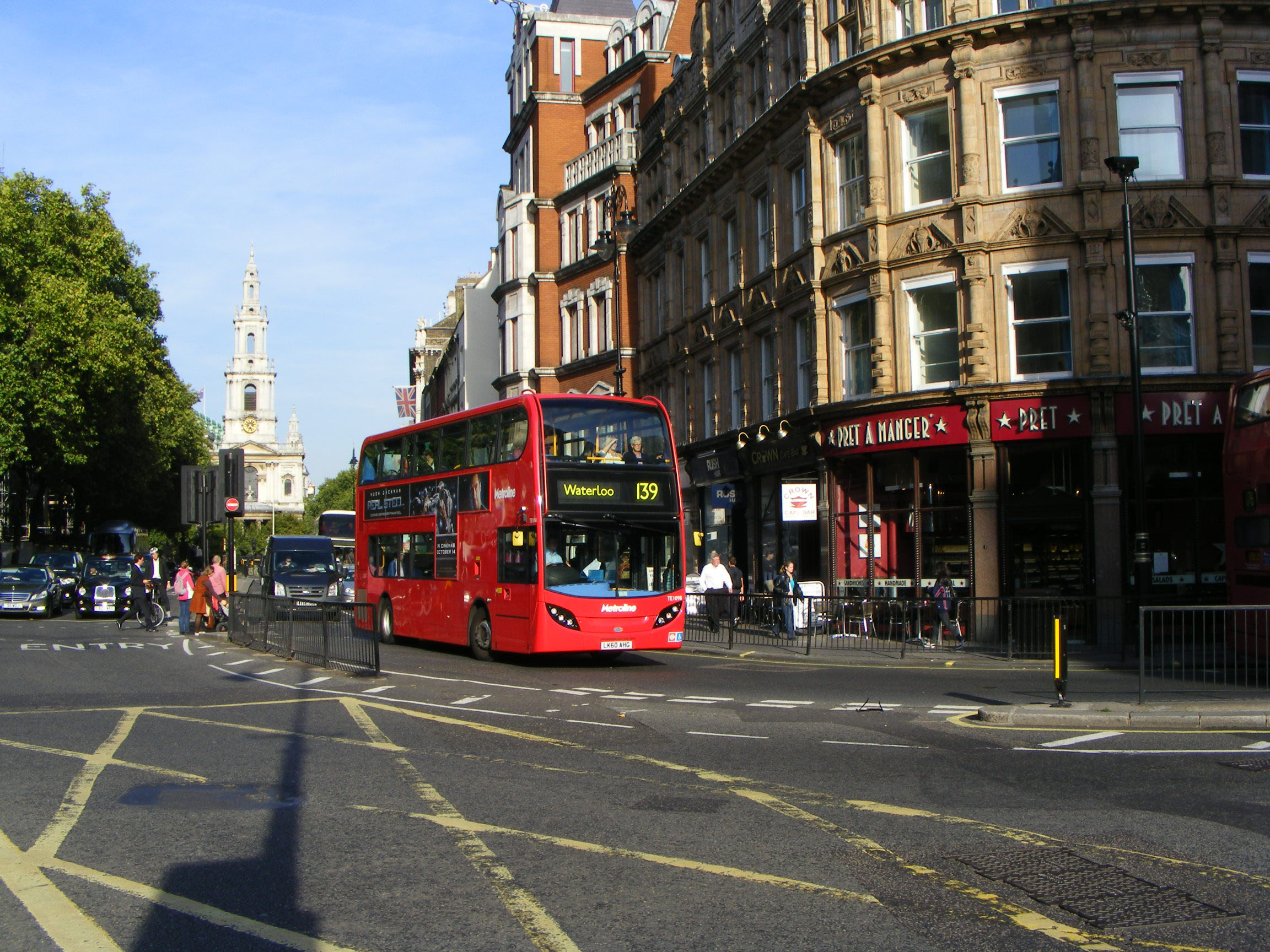 Next in line TE1098 (LK60AHG) seen on the same day in Trafalgar Square with St Martin in the Fields behind.