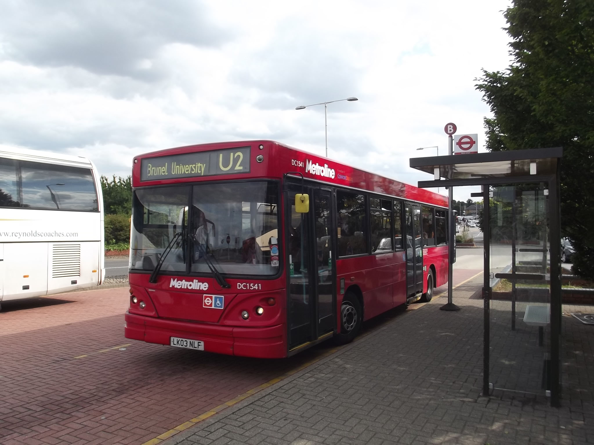 Metroline acquired a number of First's Caetano Nimbus bodied Transbus Dart SLF buses with their west London operation. This one is seen at Hillingdon Station on the U2 in August 2013, DC1541 (LK03NLF), new as DHL504. A one way system at the Station means prospective passengers have to take care or they could catch a U2 going in the opposite direction to Uxbridge Station as opposed to the circuative route to Brunel University. |