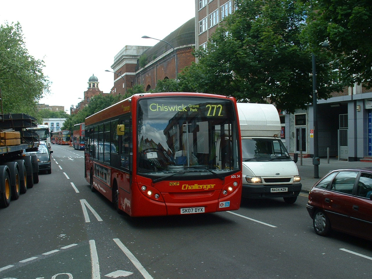 Seen a year earlier is Alexander Dennis Enviro200 ADL34 (SK07DYX) followed by a hoard of deckers as it heads for Chiswick on the 200.