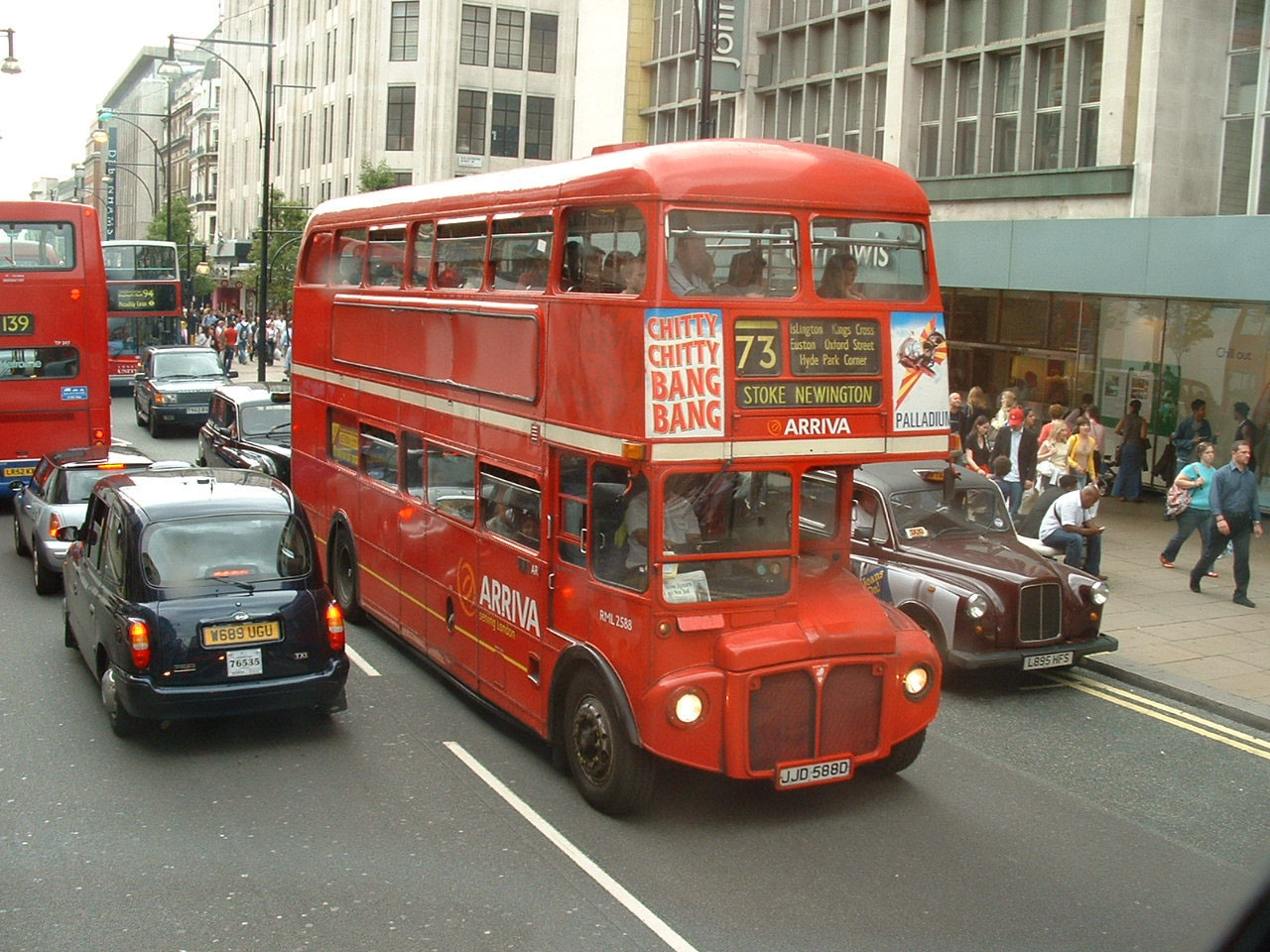 Arriva RML2588 (JJD558D) working its way up Oxford Street in June 2004 before the route was given over to cattle trucks (sorry - bendibuses).