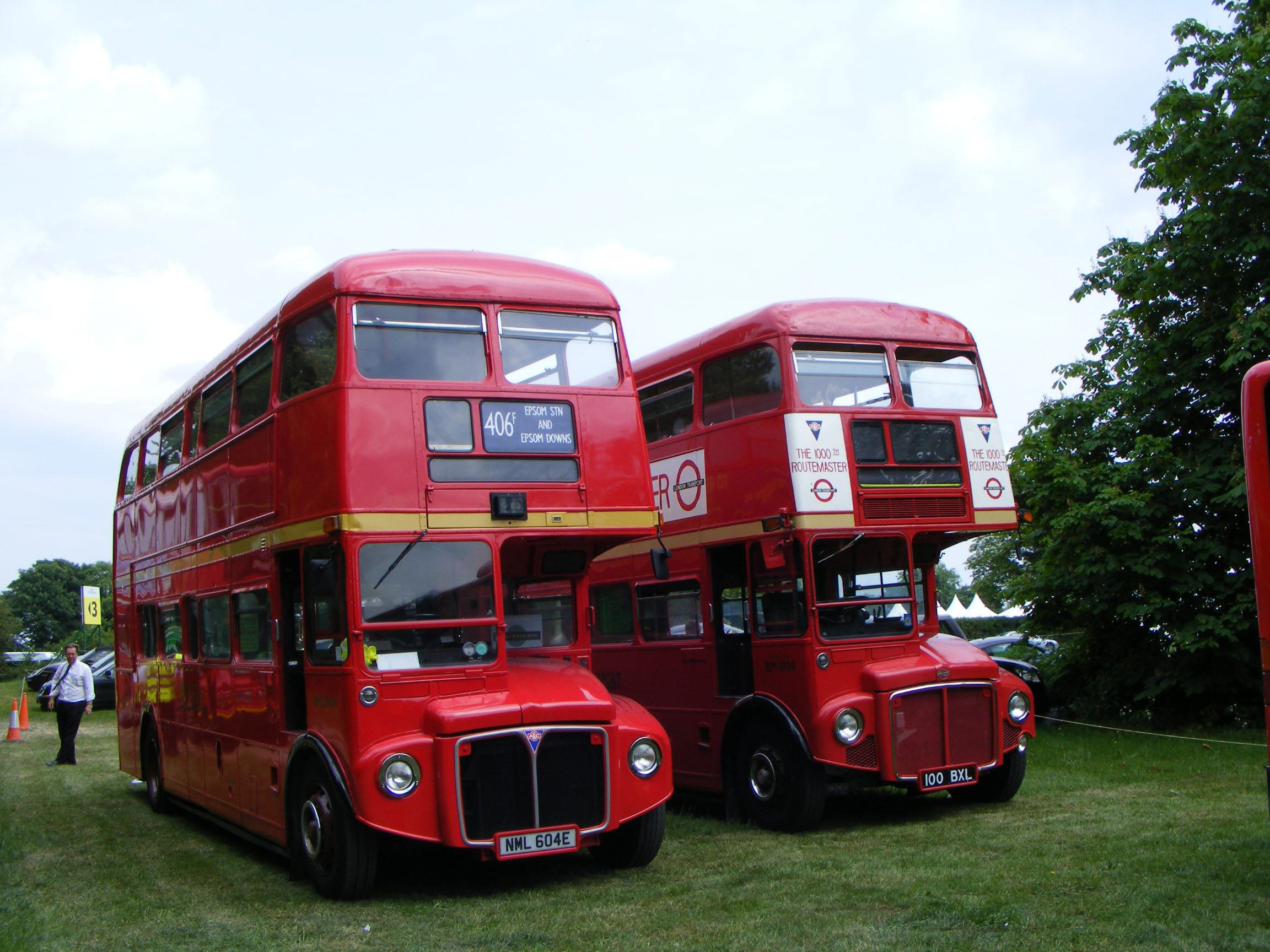 The Epsom Derby was a good excuse to put RML2604 (NML604E) into passenger service on the special 406F route linking the racecourse to Epsom Station. It is seen at resting on the Downs with preserved RM1000 in June at the 2010 event.